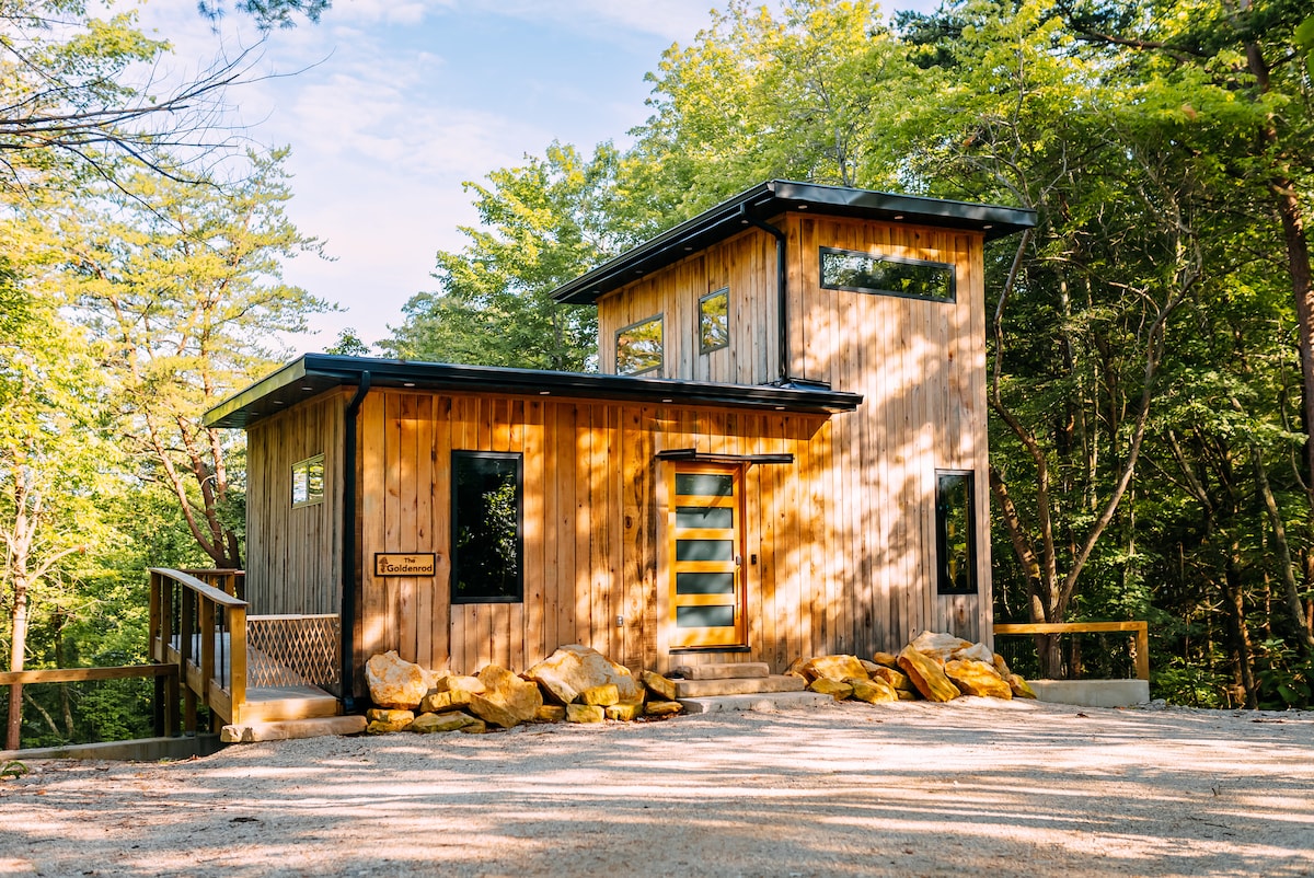 Welcome to Skyview Cabin! A unique all wood construction suspended over a cliffside. What sets our cabin apart is its unique perch – suspended 30 feet up in the air, offering a truly elevated experience. The property is peacefully secluded, yet just a short 20 minute drive to Red River Gorge. Enjoy a nice soak in the hot tub after taking part in all the RRG has to offer : swimming, kayaking, boating, biking, fishing, golfing, hiking, caving, and rock climbing.