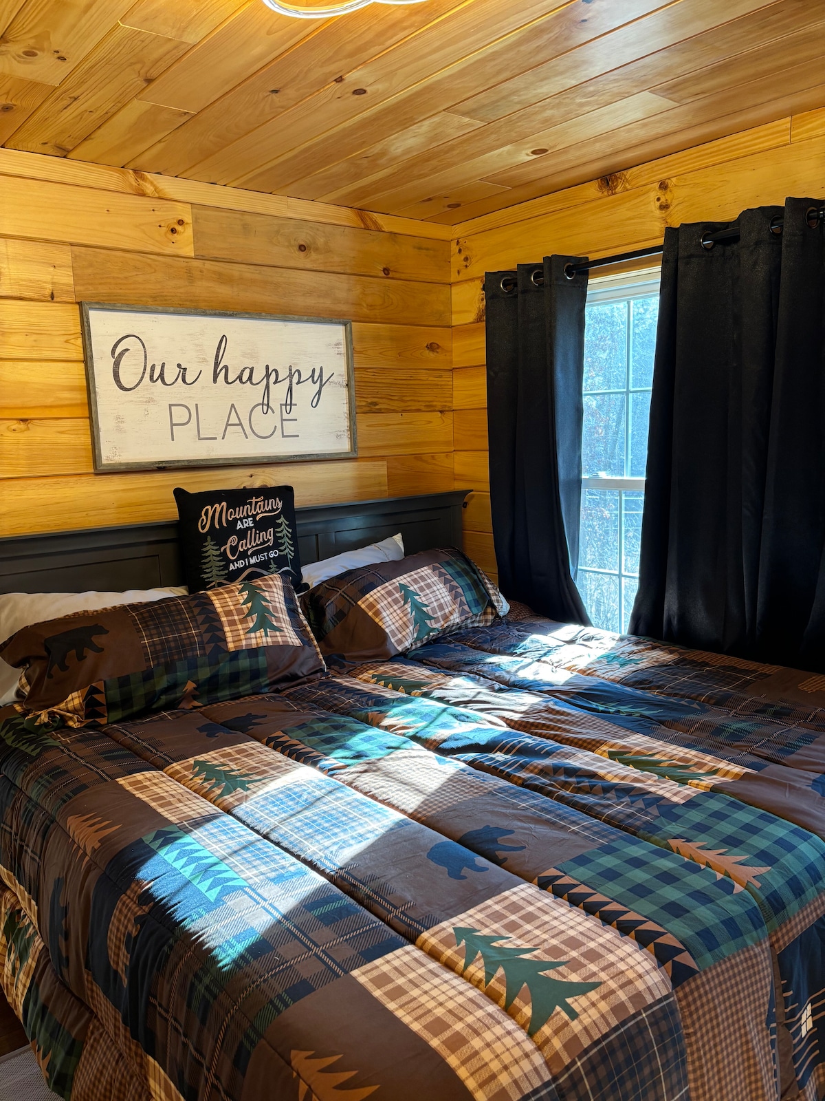 What Guests Love Most: • Peaceful Setting (but close to everything) • Luxury King Bed + High-End Linens • Private Hot Tub on Deck • Professionally Designed Interior • Modern, Fully Equipped High-End Kitchen • Smokeless Fire Pit (firewood provided) • 2GB WiFi + Home Office • Washer/Dryer • Sonos Sound System • All Lights Dimmable Sleeps 4 Comfortably: Primary Loft Bedroom: king bed, dramatic forest views Main Floor: Queen bed (upgraded mattress), 20’ ceilings