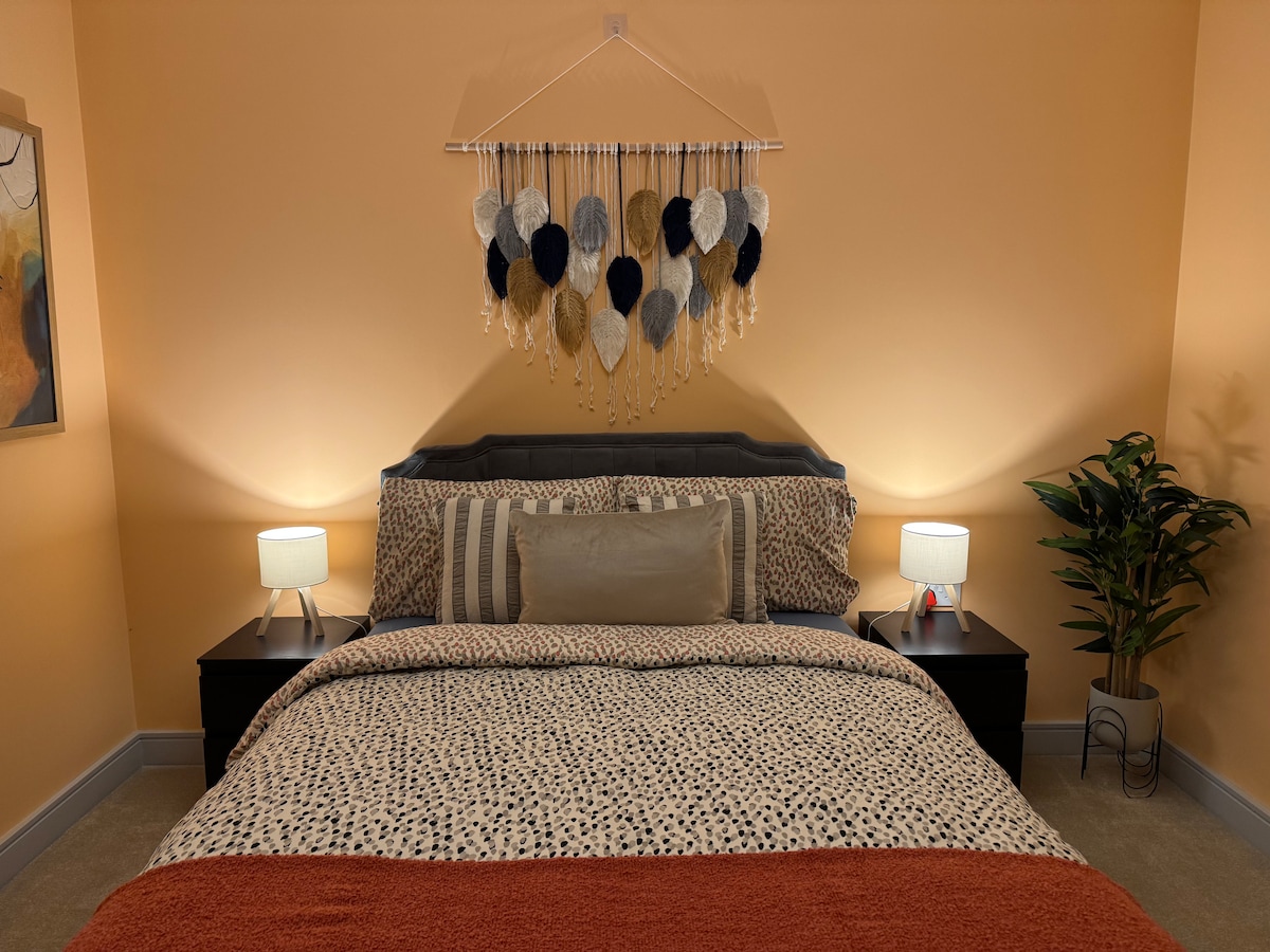 Bring the whole family to this great place with lots of room for fun. Master bedroom with en-suite and a comfortable queen-size bed, twin bedroom with 2 single beds, and a single bedroom. The sofa bed can also accommodate 2 people. This home has 3 toilets, 1 shower, and a bath. Towels provided. Good size garden, free parking for up to 3 cars. Nice and friendly estate, a home away from home. Tea and coffee facilities are available and cereals for breakfast.