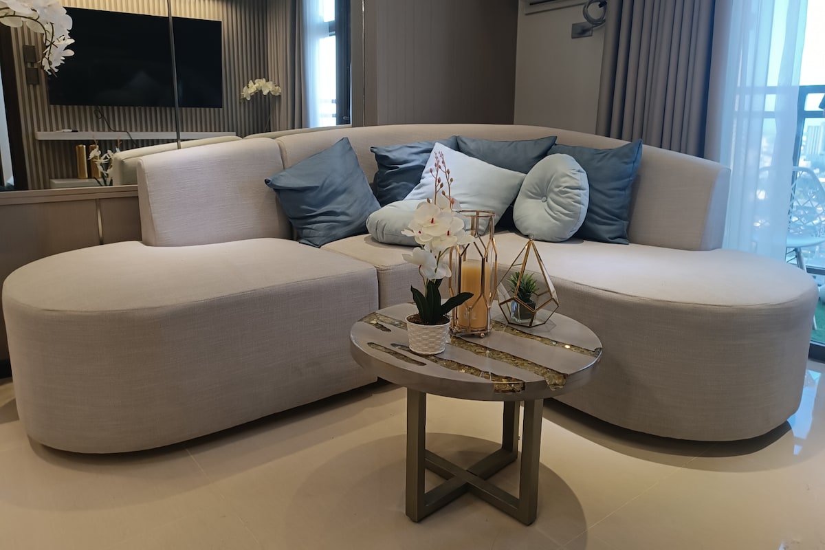 Stay in a stylish, interior-designed tropical suite with AMAZING & UNOBSTRUCTED CITY VIEWS in Knightsbridge Residences, a 5-star condo centrally located in Poblacion. Enjoy this luxurious 40 square meters suite that is MORE SPACIOUS than most tiny 20 sqm Airbnbs in the area. Located at the 37th floor w/ 5-star amenities, fully-fitted kitchen, balcony and everything you need for a perfect stay: 200Mbps Fiber WiFi, Netflix, 43-inch TV, Olympic-size swimming pool, modern gym, sauna & 24/7 concierge