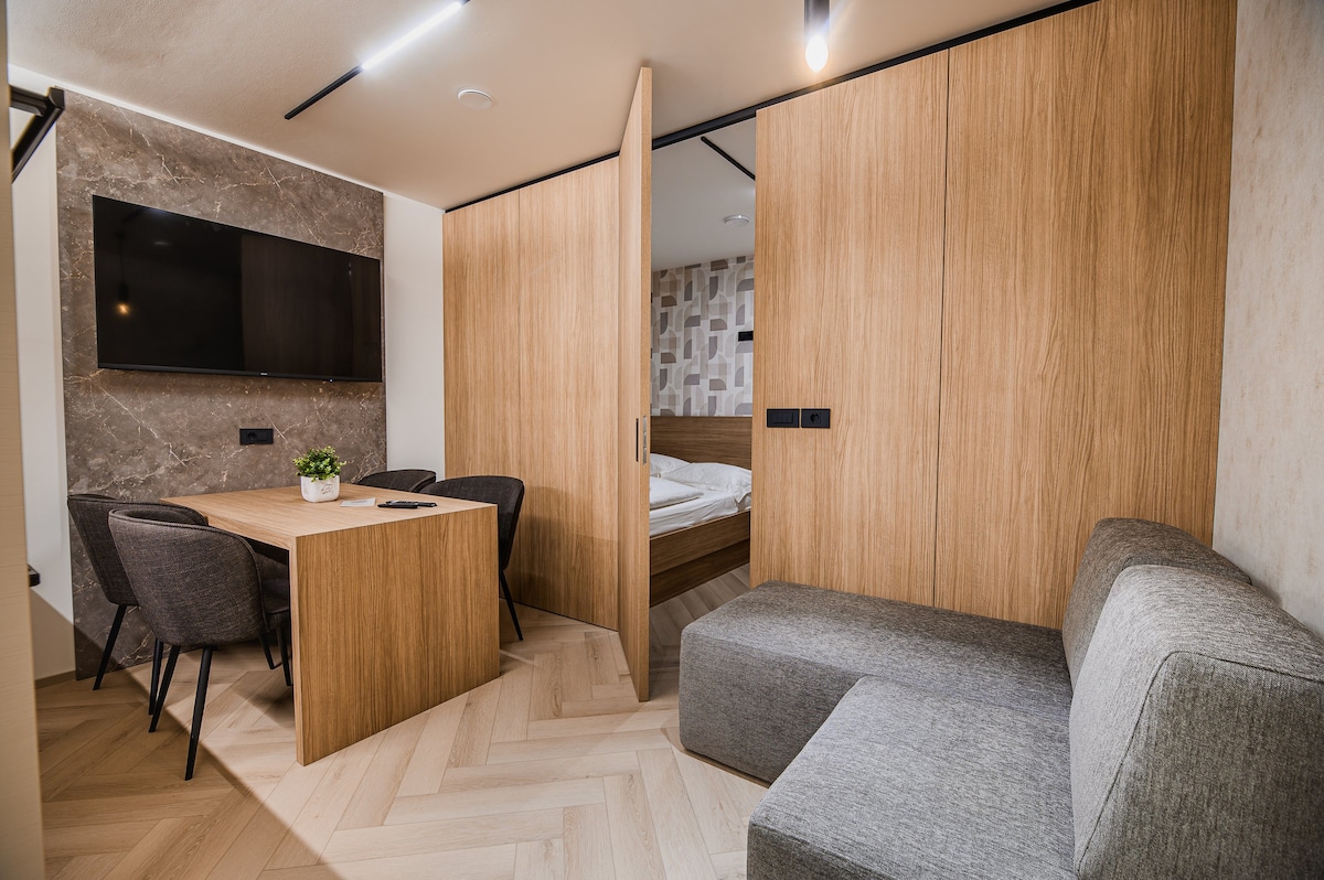 Welcome to your cozy & stylish apartment in Bovec, nestled in the heart of the stunning Soča Valley. Surrounded by majestic mountains and unspoiled nature, this thoughtfully designed space offers modern comfort and practical touches. Relax in the bright living area, cook in the fully equipped kitchen, unwind in the comfortable bedroom, and enjoy the incredible views from the terrace or living room. It's the perfect base for exploring Bovec's adventures and the valley's unparalleled beauty.