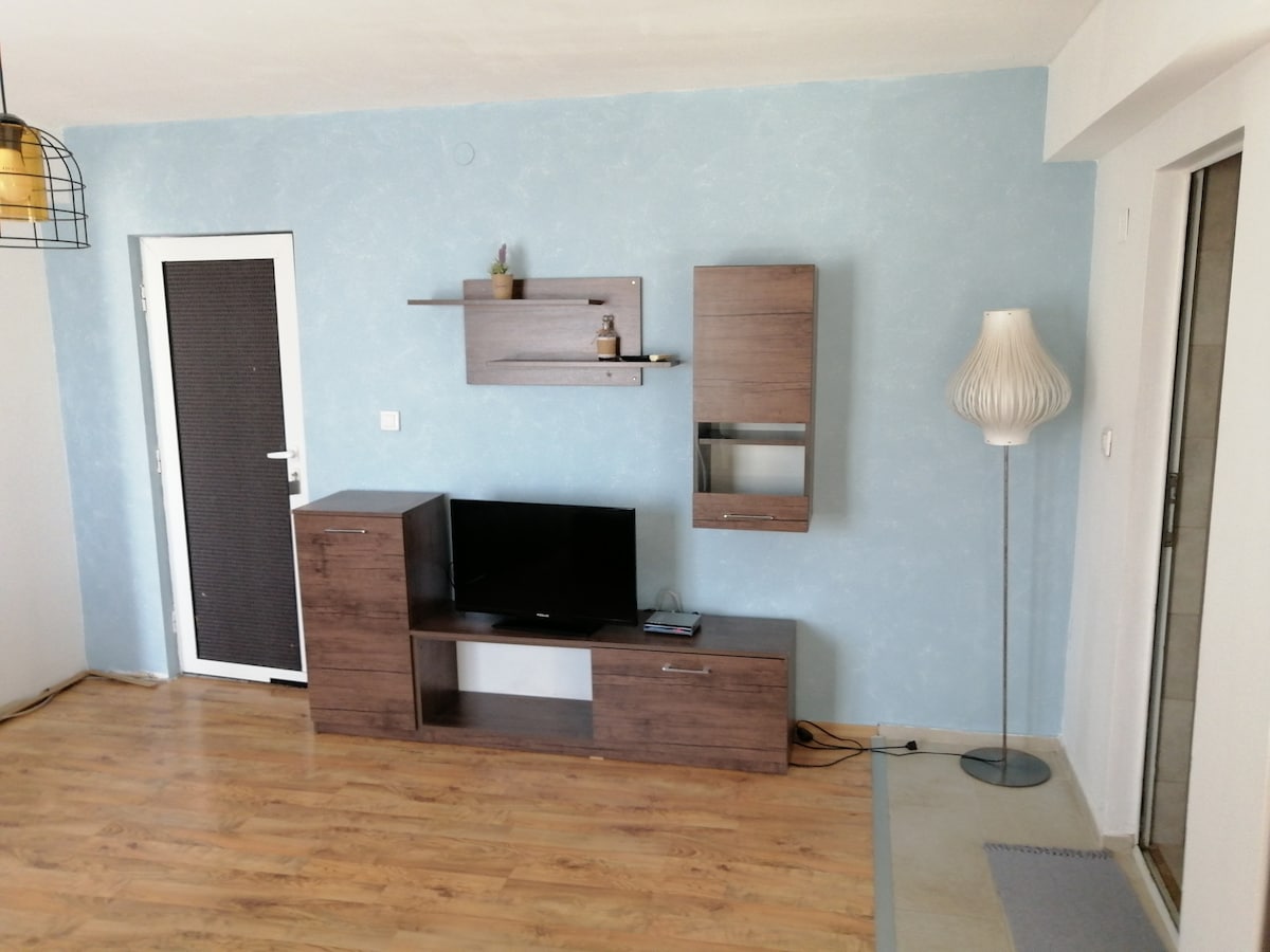 A nice quiet flat in the center of Stara Zagora with a bedroom and a living room with a kitchen corner and a large terrace. Completely independent, 5 min walk from central shops, restaurants and cafes.