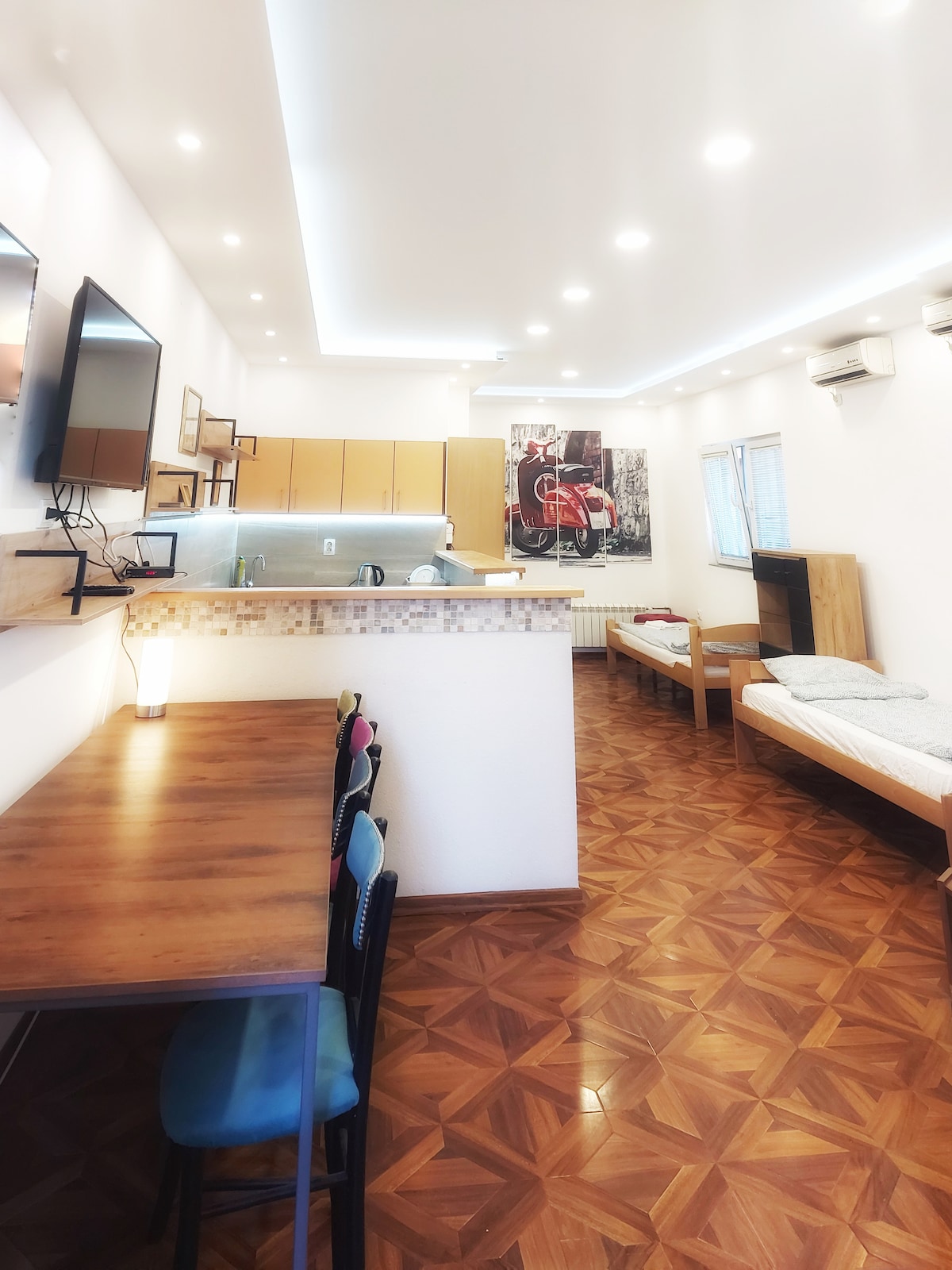 Beautiful studio apartment in the center of Zemun. Living like in a hotel, yet feeling like at home. Freshly renovated studio with handmade furniture for a warm and cozy feeling. Conveniently located for leisure and business travelers, the main street is just a few steps away. With a drugstore and a night gas station across the street, and many nice bars and restaurants in reasonable walking distance you will always fulfill your needs in several minutes.