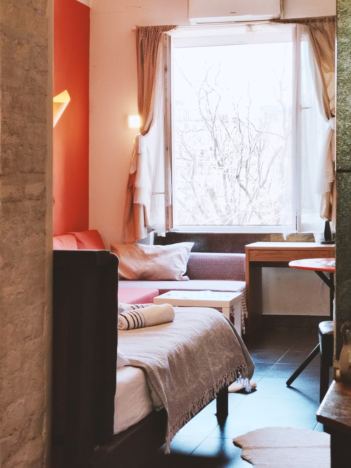 Discover our studio in the heart of Belgrade, a historical gem with cobblestone streets and a vintage ambiance. Enjoy Sava river views from the French balcony while sipping morning coffee. With cafes at your doorstep, it's conveniently close to everything. Fully refurbished and equipped with new furniture, our studio offers a comfortable stay. Experience the charm of Belgrade in this centrally located retreat.