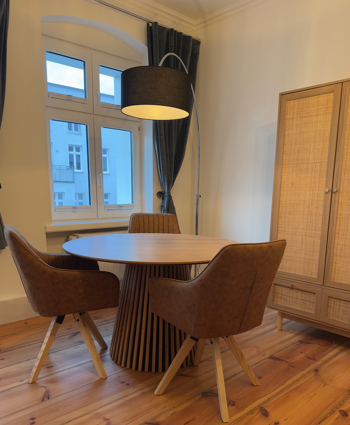 Discover the vibrant heart of Berlin from our charming holiday apartment! Located in the trendy Friedrichshain district, our fully furnished apartment can accommodate up to 5 guests. Enjoy modern amenities such as a fully equipped kitchen and a comfortable living room. The central location and the S-Bahn and U-Bahn within walking distance allow you to easily reach the famous sights such as the Brandenburg Gate, Checkpoint Charlie and Alexanderplatz