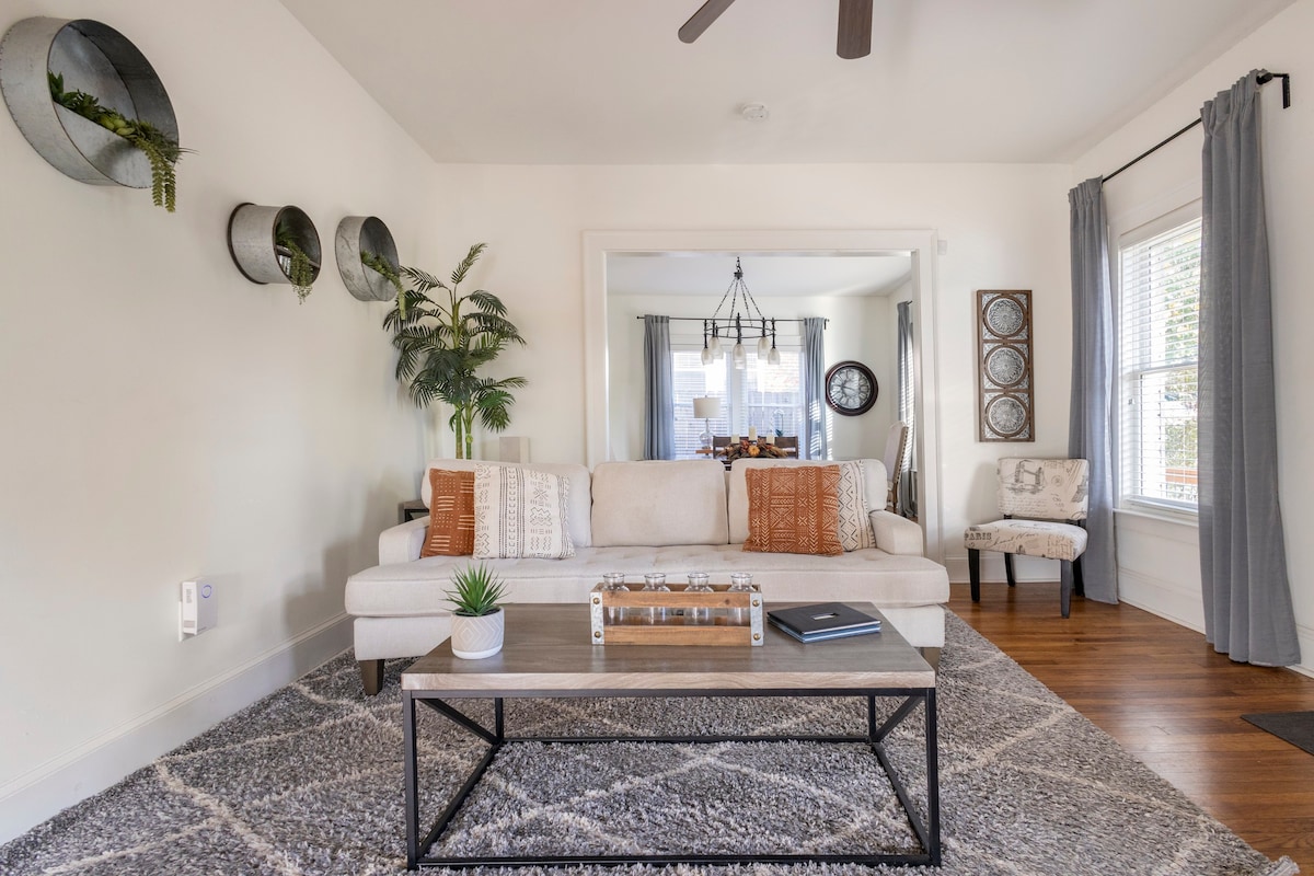 Private first floor suite in a house in the Oakhurst neighborhood of Decatur with a full kitchen, cozy queen bedroom, and a pull out queen sofa bed. Huge windows provide natural light or enjoy your coffee on the front porch. • 5 min. walk to Oakhurst Village with restaurants & more • 10 min. walk to Agnes Scott College • 24 min. walk to Decatur Square & Marta • Separate entrance with no door to the attached house • Separate HVAC with no shared air ducts with the house