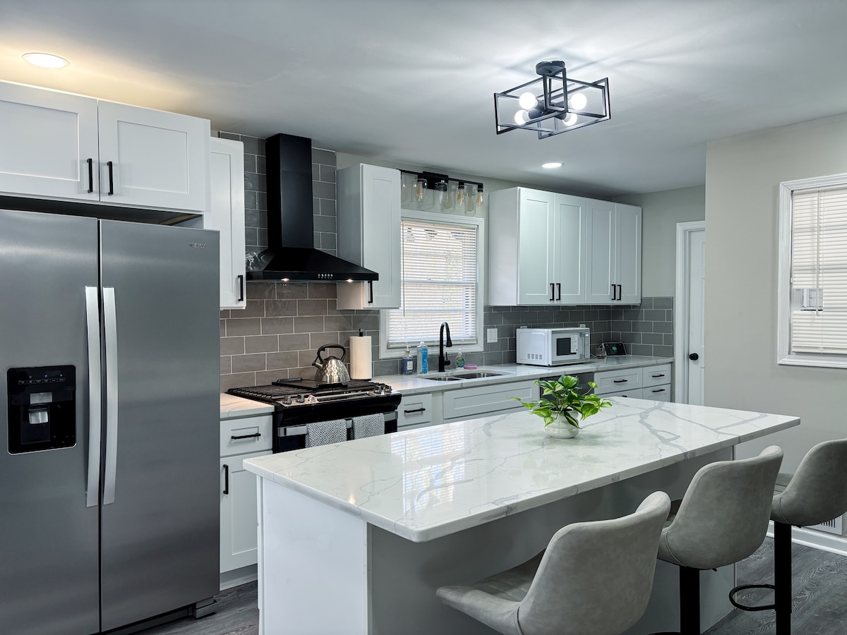 Make your trip to Atlanta unforgettable when staying at Camilla Haus, a 2023 luxurious modern built. Our home is a sophisticated new construction with high end finishes featuring 10 ft ceiling, open floor plan, a grand chef kitchen, double island with high end wood slat accent, designers bathrooms, large master suite with a double shower, pendant lights over nightstands, largeTVs in each room, LED lights throughout and more…