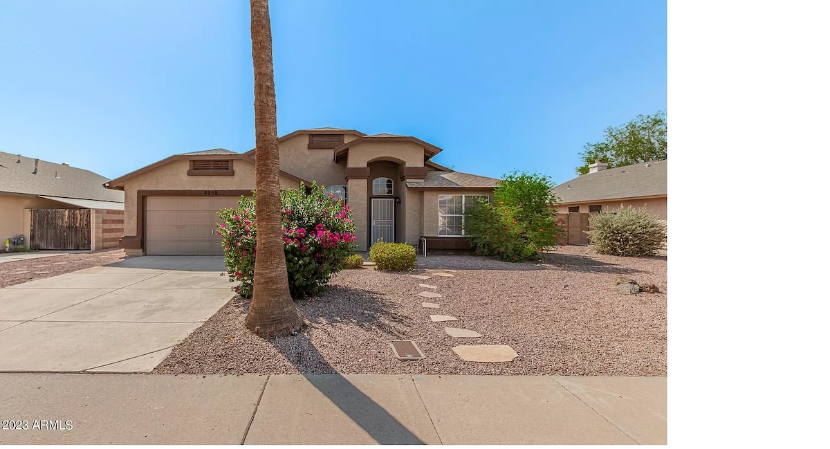 Clean relaxing and comfortable home. WALK to-STATE FARM STADIUM /VAI Resort/Waterpark. Baseball Spring training fields are five a minute drive away. Very close to the Westgate entertainment district. DESERT DIAMOND CASINO and TOPGOLF are less than 1 mile away. WALK to RESTAURANTS MOVIE THEATRE , hobby stores, designer, clothing OUTLET STORES a BREWERIES sports bars and even axe throwing!