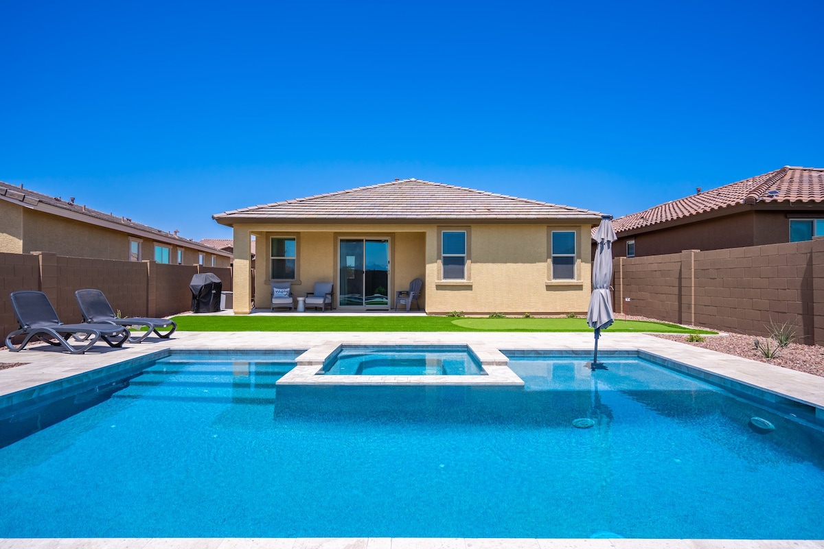 Easy walk to Statefarm and Desert Diamond Arena. Closest house to stadiums. Also located near Westgate Entertaiment District, Free Heated Pool, Hot Tub, Outdoor Kitchen Short walk to Statefarm Stadium, Desert Diamond Arena, Less than 5 minute drive to Top Golf, PopStroke, Andrettti Racing Karts, Chicken and Pickle. Less than 20 minute drive to several SpringTraining Facilities. 5 Full service Golf Courses within 15 minutes Heated Pool (please ask about heat prior to check in), covered patio a
