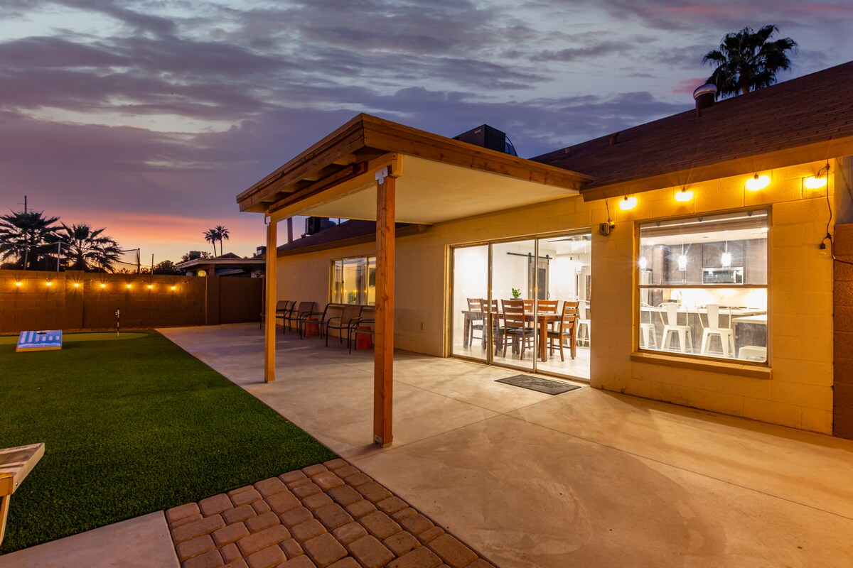 Welcome to the Handcrafted Home in the desert. There is a large outdoor area with a heated pool, bbq, and propane fire table. The heating of the pool is included in the cost of your stay from October-May. You will enjoy entertaining in the fully equipped chef’s kitchen with updated appliances and an air fryer in the oven. The comfy beds are memory foam and the bathrooms are both updated. Skip the game day/concert traffic and opt for an easy walk. We are located 0.8 miles from State Farm Stadium.