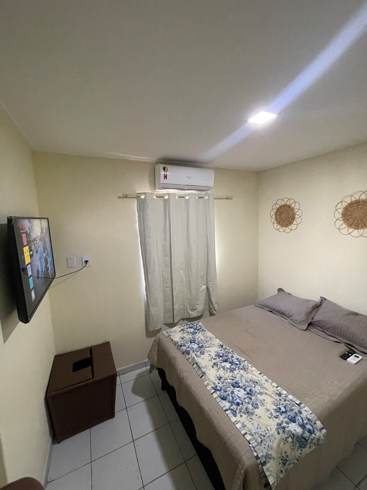 O quarto privativo está equipado com uma TV e ar condicionado, oferecendo conforto e entretenimento. Além disso, o banheiro privativo garante privacidade e conveniência.