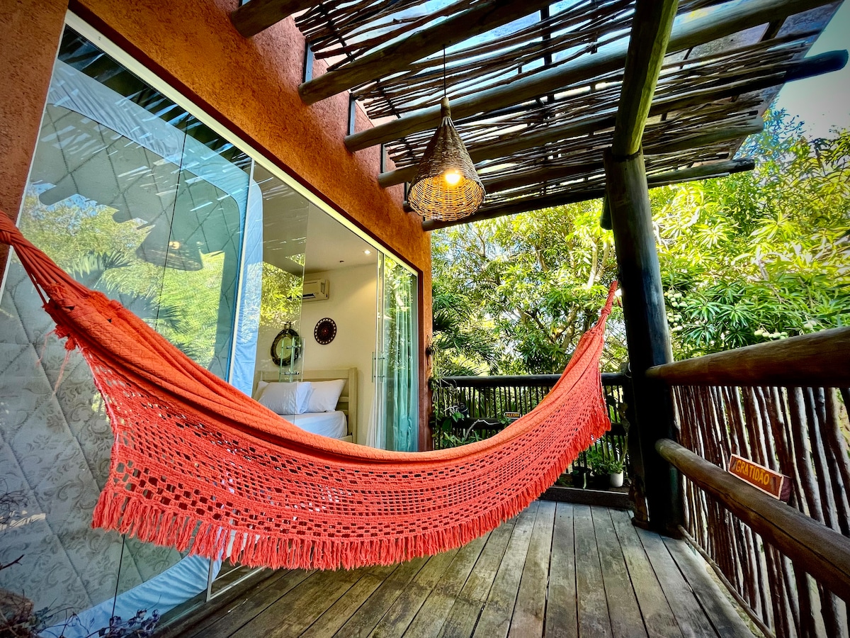 Relax in a cozy retreat, surrounded by nature and just steps from the most beautiful beaches on the Alagoas coast: the idyllic Lages Beach and the blue-flagged Patacho Beach. Here, every detail has been designed to make you feel at home: from the charming décor to the cozy atmosphere that invites you to slow down. ** Warning: The house has a mezzanine — for safety reasons, we do not recommend it for young children.