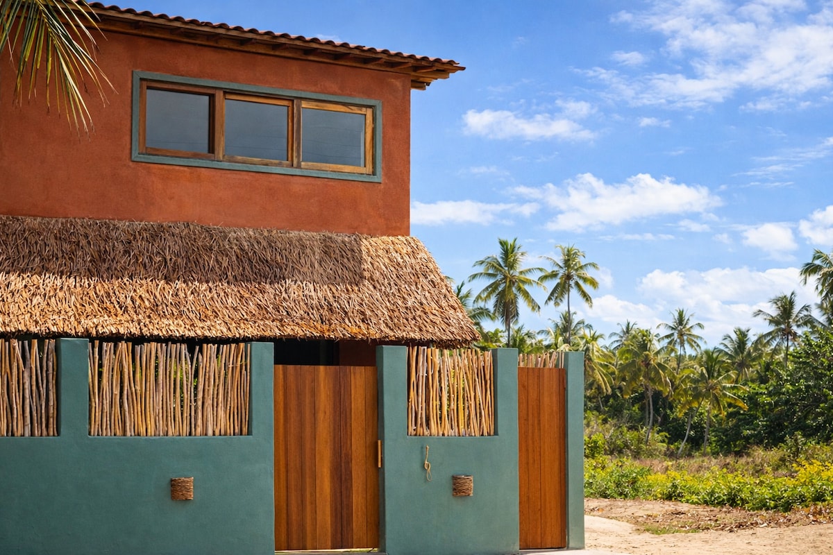 Casa Caroá is a beautiful and modern house right on the sand. The house has three spacious individual chalets behind the main house. The chalets are spacious suites with air conditioning, minibar, king beds, TV and outdoor shower. Guests can also use the shared beachfront pool. Casa Caroá has a small shared kitchen, which guests can use to heat and consume simple foods, dishes brought from restaurants and drinks. Note: the small kitchen is not a full kitchen and does not have a barbecue grill.
