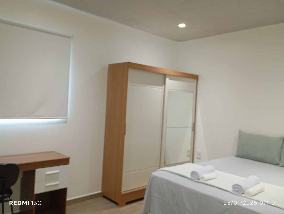 Studio simples e aconchegante, ideal para até 2 pessoas. Equipado com cama de casal, sofá-cama, ar-condicionado, ventilador, TV, frigobar, micro-ondas e cafeteira. Localizado na Av. Dr. José Sampaio Luz, a poucos minutos da praia e perto de mercados, cafés e restaurantes. 🌿✨ ⚠️ Importante: O Studio possui escada interna íngreme e não é adequado para bebês ou crianças pequenas.