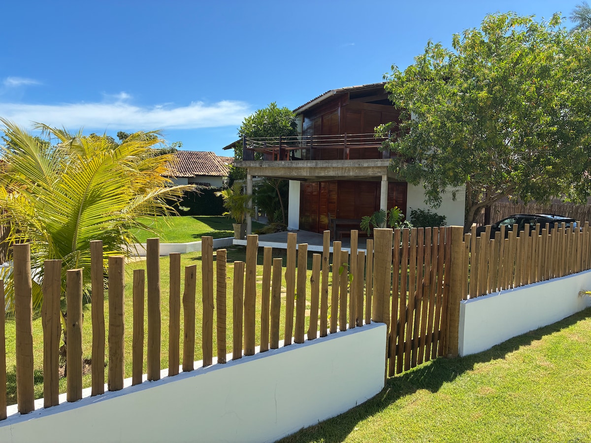 Casa construída em Agosto de 2021 em condomínio fechado a beira mar e a 40 metros da praia, com vista direta do mar. Casa com 340m2 de área construída, aliando a rusticidade de uma casa de praia, bastante madeira, artesanato e com acabamentos de alto padrão, tem 05 quartos, sendo 04 suítes, todas com varanda e 03 com vista direta do mar. 01 quarto com cama queen, 01 quarto com cama casal, 02 quartos com cama de solteiro que pode-se juntar e virar king, todas as 04 suítes tem bicama.