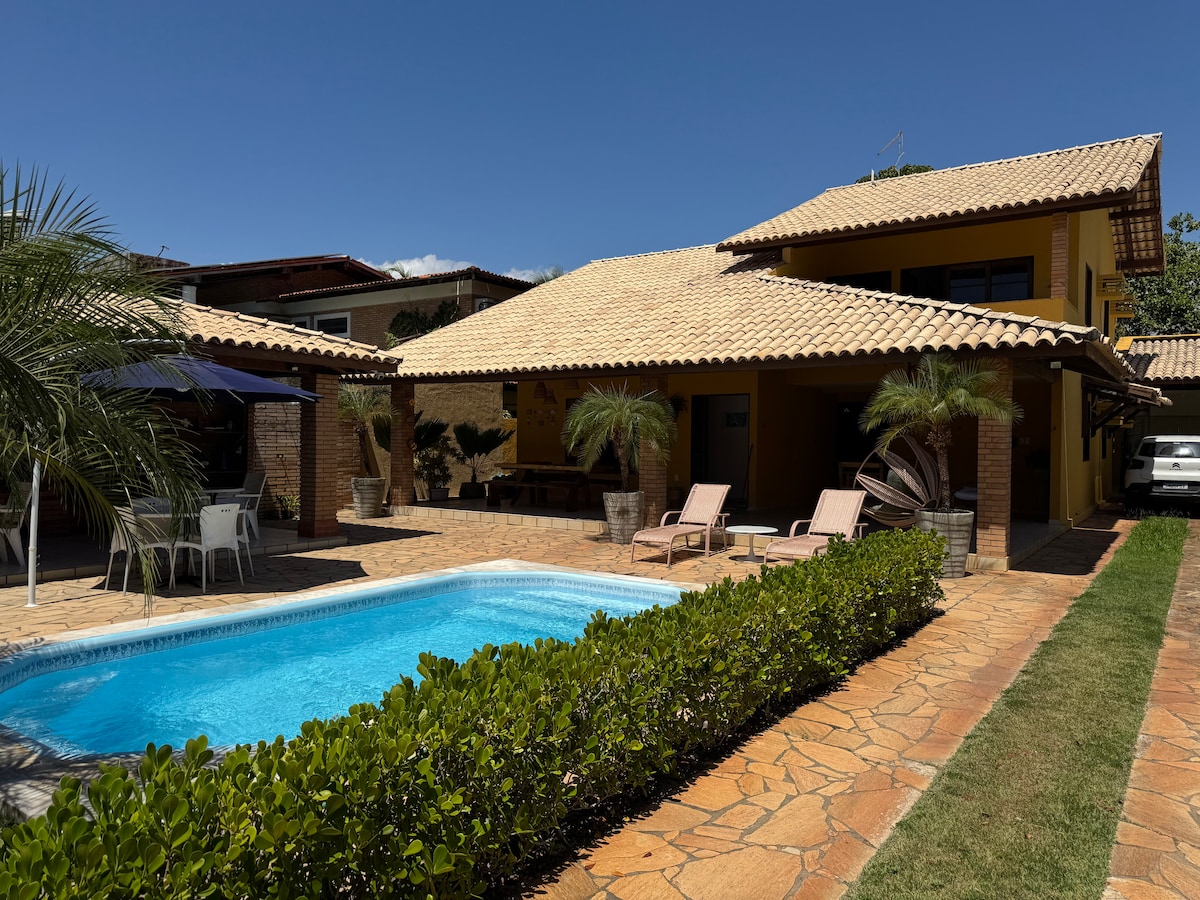 Desperte seus dias em um refúgio pensado para viver momentos únicos com quem você ama. Esta casa térrea no Condomínio Praia Dourada combina conforto, praticidade e um ambiente perfeito para famílias que buscam tranquilidade, privacidade e uma experiência de hospedagem completa. Com 4 suítes climatizadas, áreas integradas e uma área externa convidativa, é o cenário ideal para dias de descanso, lazer e conexão. A casa foi projetada para oferecer conforto em todos os detalhes: 04 suítes completas (todas com ar-condicionado) Capacidade para até 15 hóspedes Sala ampla com pé-direito elevado e ambiente acolhedor Cozinha equipada com eletros completos e ilha central Área gourmet externa com churrasqueira Piscina privativa com espreguiçadeiras e chuveirão 02 vagas de estacionamento Ambientes integrados que favorecem convivência, praticidade e momentos memoráveis. Distribuição das suítes Suíte 1: 1 cama queen + 1 solteiro (3 pessoas) Suíte 2: 1 cama queen + 2 solteiros (4 pessoas) Suíte 3: 1 cama queen + 2 solteiros (4 pessoas) Suíte 4: 1 cama queen + 2 solteiros (4 pessoas) Todas com banheiro privativo, chuveiro elétrico e excelente funcionalidade. *Obs. 1: Paga energia elétrica que consumir (1,50 real por kw/h) *Obs.2: Cobramos caução no valor de uma diária, para garantia de indenização de algum dano possível. *Obs. 3: Passeios turísticos e Serviços de hospedagem (faxina, cozinha, aerotransfer, aluguéis de carro, passeios e entre outros não estão inclusos na locação do imóvel, contudo podem ser contratados a parte).