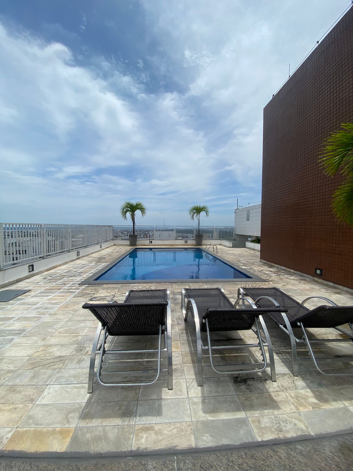 Flat amplo com quarto 2 camas de solteiro ou 1 de casal, sala, cozinha americana, varanda, mobiliado, com mesa, sofá, 2 aparelhos de TV a cabo, um na sala e outro no quarto; geladeira, cooktop, 2 aparelhos de ar condicionado, quarto e sala; internet, limpeza diária; 1 vaga de garagem. Recepção 24 horas, restaurante/bar. Área de lazer completa com piscina ao ar livre, academia, sauna, salão de jogos e uma bela vista da cidade e da Ponte Rio Negro. Ótima localização com três shoppings próximos.