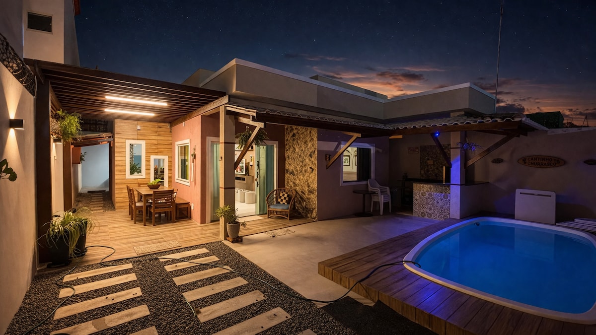 Desfrute de momentos inesquecíveis na Casa Nova Jauá, um espaço confortável, ideal para quem busca lazer, privacidade e boa energia perto da praia. A casa oferece uma experiência única, com piscina privativa com cascata, área gourmet equipada e ambiente acolhedor que combina modernidade e charme. Perfeita para reunir família e amigos! ✨ Destaques do espaço: * Piscina com iluminação e cascata * Espaço gourmet com churrasqueira * Ambientes confortáveis * Clima aconchegante à noite.
