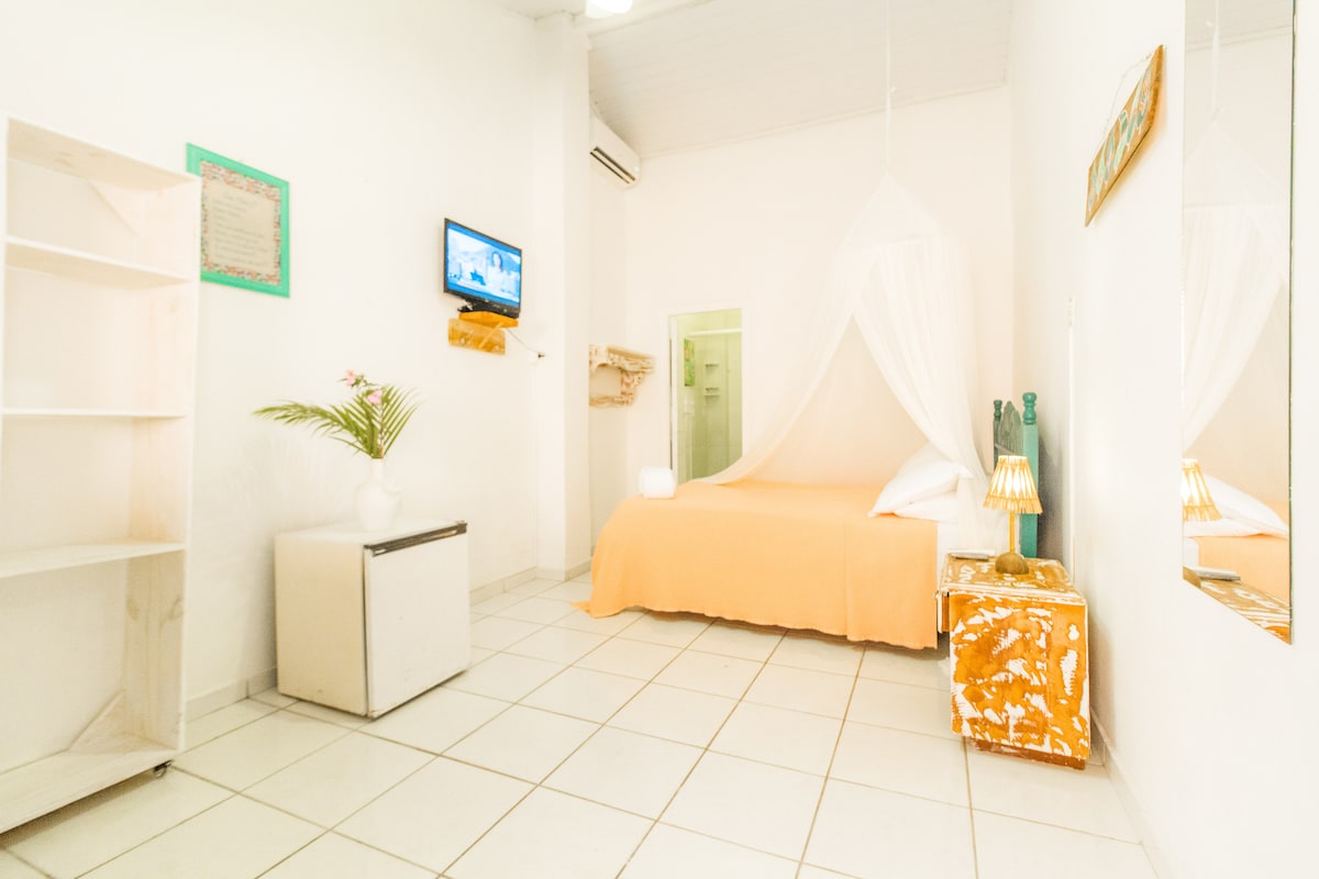 A pousada a fica em um ponto central da ilha. A pousada tem 15 quartos com banheiro privativo. Cada quarto acomoda 2 pessoas, este é o quarto básico. Mas temos quartos que podem acomodar até 6 pessoas. Todos os quartos tem banheiro ar condicionado ,tv , com cama Queen size , frigobar , armário para roupas, free WI-FI em todos os quartos. ATENÇÃO DIÁRIA SEM CAFÉ DA MANHÃ . O site dá o preço para 2 ou 3 ou 4 ou 6 pessoas no mesmo quarto. Para mais quartos o valor deve ser questionado.
