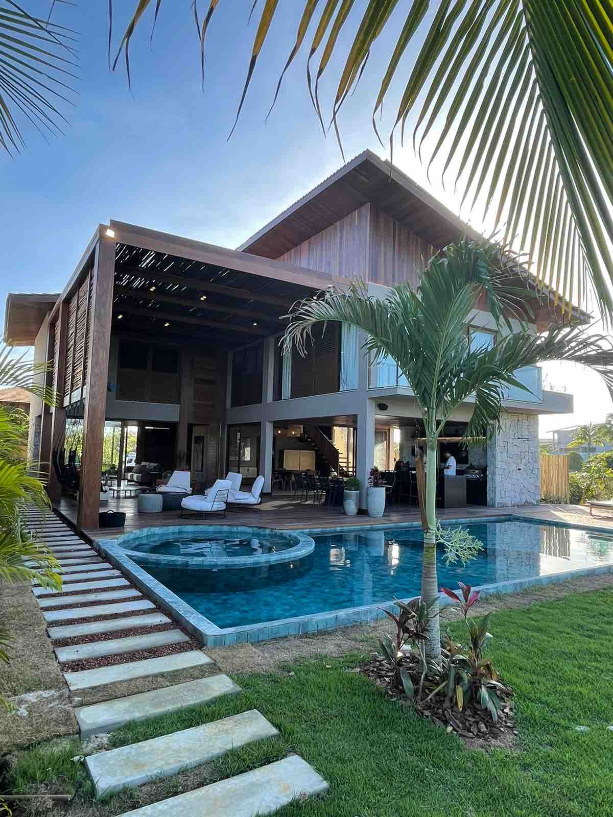 A casa projetada pelo arquiteto Sallum, com segurança 24h, fica à 2,3 km do famoso Quadrado e 2,6 km da praia de Trancoso. A Casa Iluminada foi minuciosamente planejada pensando na valorização dos seus elementos naturais, como iluminação e ventilação, no intuito de oferecer um ambiente moderno, clean, confortável e aconchegante com um toque de sofisticação e conforto. Seu terreno é de 1.300m2 com 600m2 de área construída. Dispõe de uma piscina de 150m2, área de churrasco e espaço verde.