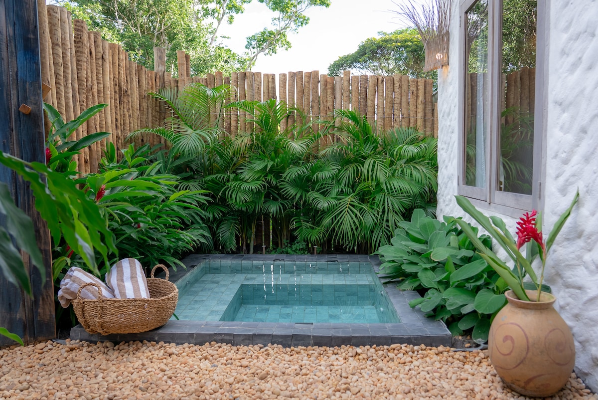 Relaxe neste espaço calmo e cheio de estilo.para melhor conforto o café da manhã está disponível das 8:00 as 10:30 , aproveite a sua piscina privativa , no andar superior está a sua varanda onde vc pode observar a mata e ouvir o som dos pássaros Estamos localizado a 1,8 km do quadrado, a 2,2 km das praias dos nativos e coqueiros,a limpeza e arrumação está incluso todos os dia, Nossas roupas de cama é 300 fios em algodão egípcio. A cada 3 noites as roupas de cama é trocada