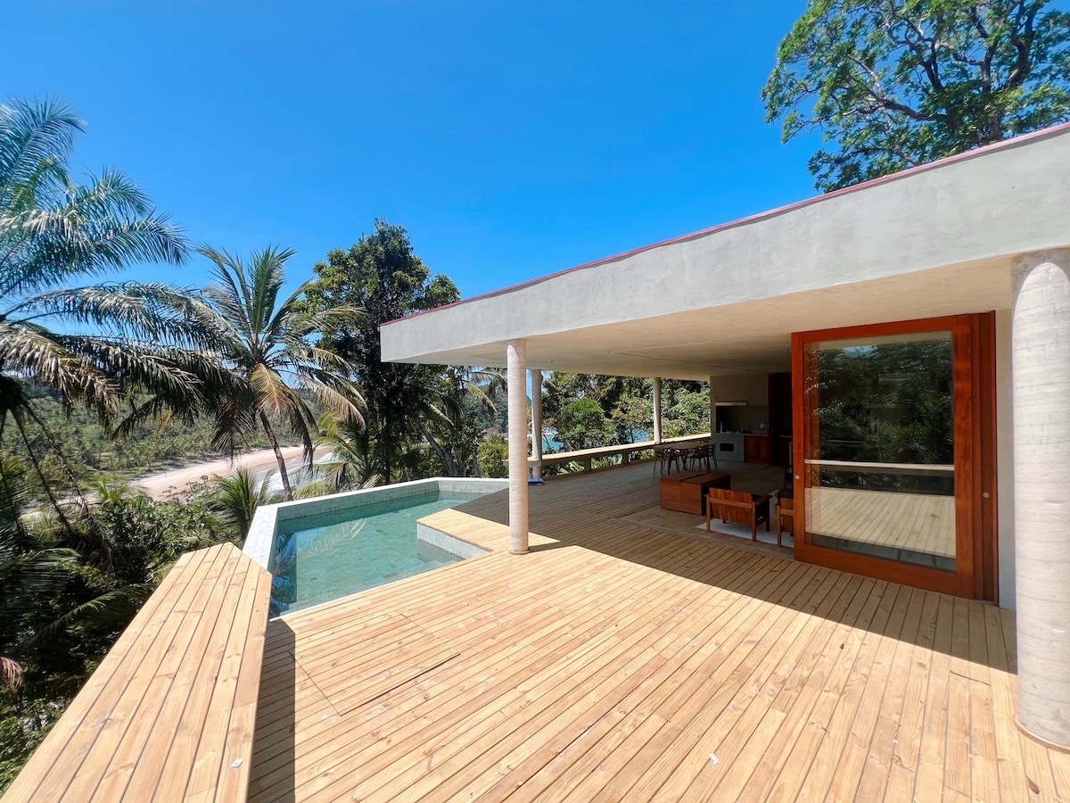 Um refúgio único, no meio das árvores, com vistas deslumbrantes. Perfeito para casais, famílias ou amigos. Acesso direto à Prainha, a mais linda e exclusiva de Itacaré, por escada privativa (em 3 minutos se está com o pé na areia). Maravilhosa piscina com borda infinita, ampla varanda e churrasqueira. Localizada no famoso condomínio Villas de São José, projetada por arquiteto renomado, com móveis de design e obras de arte. Excelente cozinheira à disposição, mediante pagamento de diária.