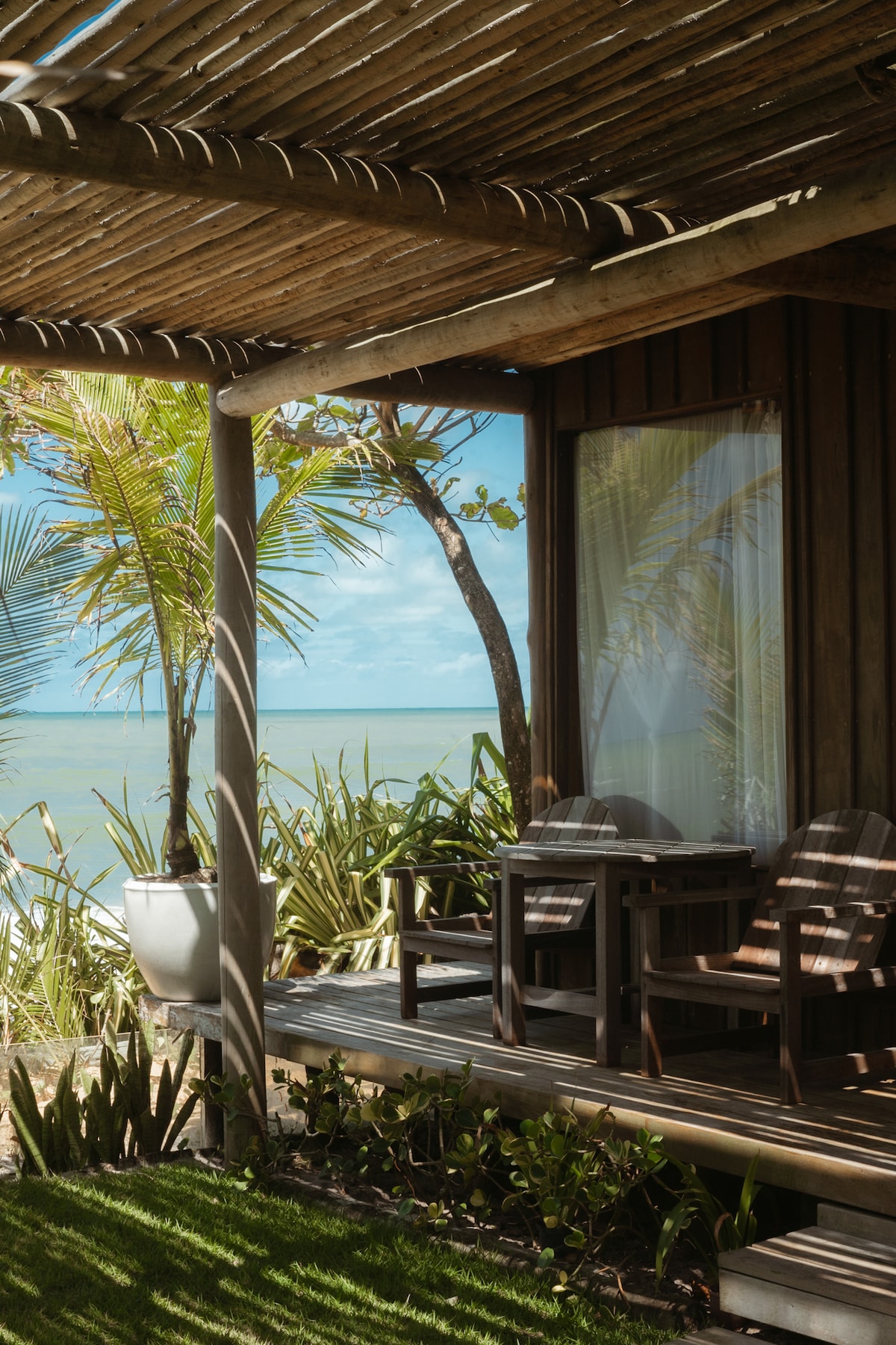 No alto do Morro de São Paulo, o Canto das Águas é um refúgio com vista para o mar e o pôr do sol de tirar o fôlego. Da praça central até aqui é uma caminhada de 15–20 min (1km), com algumas ladeiras e degraus. A recompensa é toda beleza natural exclusiva e privacidade. Ideal para casais, amigos ou viajantes solo que querem acordar com o azul do oceano. Estamos a 80m acima do nível do mar, com acesso do condomínio às trilhas para as praias Porto de Cima, Ponta da Pedra, Praia da Argila e Gamboa.