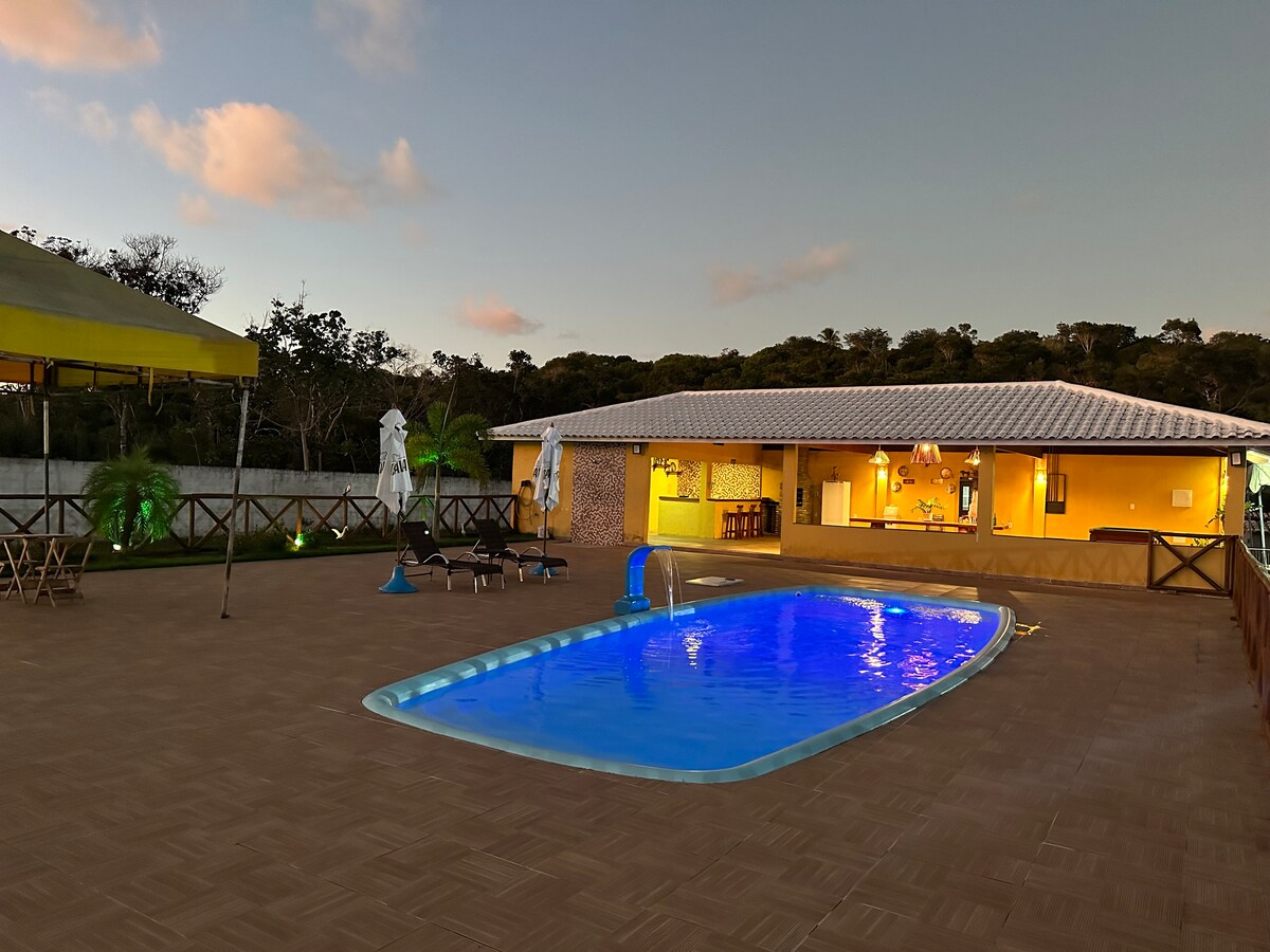 No coração do sertão, às margens do Velho Chico, nasce um cantinho de paz onde o tempo corre devagar e a natureza faz morada. Nosso refúgio é pé na areia, som de passarinho e a brisa mansa do rio abraçando o dia. Feito de madeira, pedras, barro e alma, o espaço foi pensado pra quem valoriza o essencial: aconchego, simplicidade e conexão. Aqui, você e sua família vão descansar à sombra dos cajueiros, caminhar descalços à beira do rio e se encantar com o pôr do sol dourando as águas.