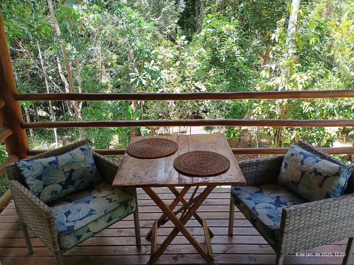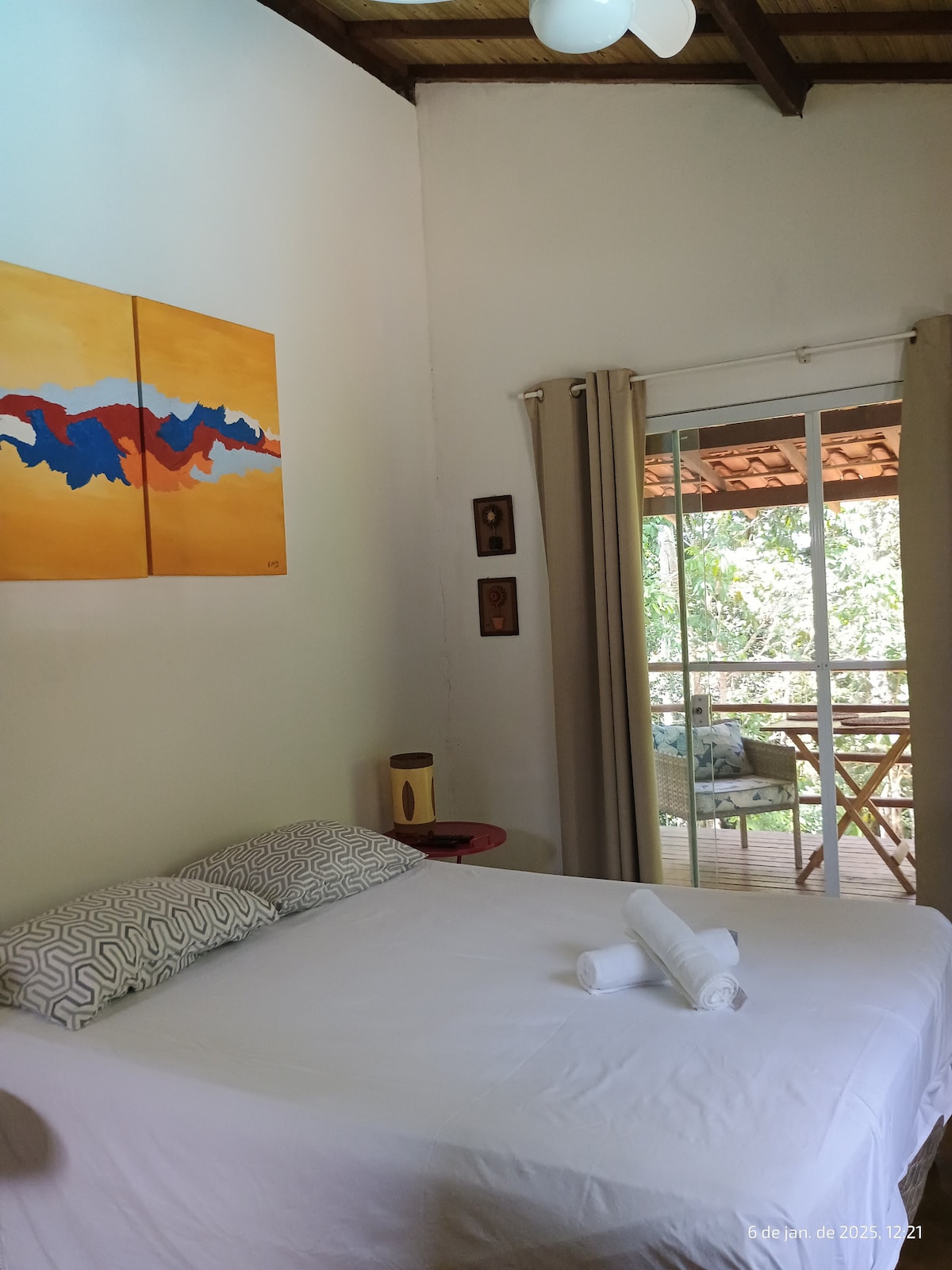 Aqui você acordará ao som dos pássaros e do vento na copa das árvores. Vai caminhar na floresta,tomar banho de cachoeira,de lagoa e se preferir,mergulhar no mar. Praticar Yoga,receber massagem,observar pássaros. É só agendar! Perfeito para casais,amigos,familia ou mesmo só. Na cozinha equipada poderá preparar suas refeições. Nossas galinhas põem ovos fresquinhos para o café da manhã. Da varanda curtirá a natureza tomando um vinho ou um chá e se der sorte da lua estar cheia vai se deslumbrar