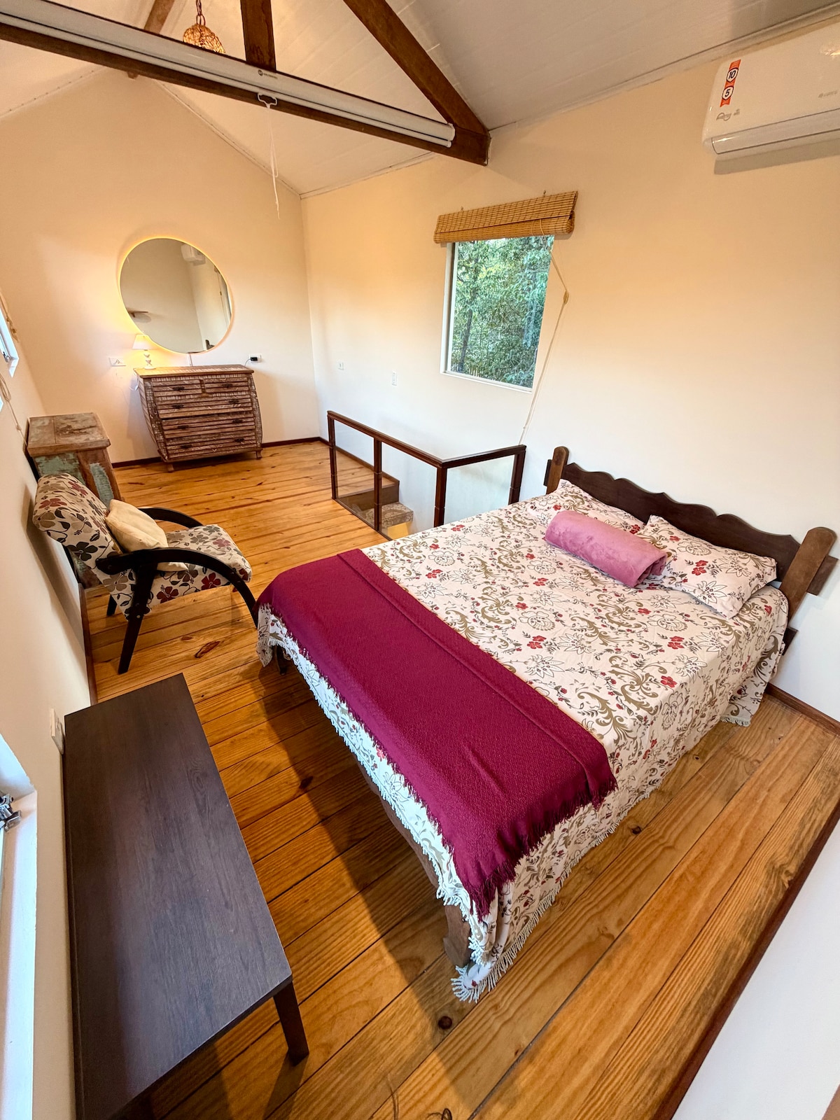 Chalé completo, ideal para duas pessoas, possui uma cama queen, podendo colocar um colchão de solteiro. Piscina privativa, cozinha bem equipada, banheiro com closet, ampla varanda com toda a privacidade e cercada de floresta com lindas flores e frutos. Aqui você estará em um refúgio, imerso na natureza e perto da vila e das praias de Serra Grande e próximo a Itacaré. ** Temos gatos e cachorros no sítio, qualquer questão enviar mensagem.