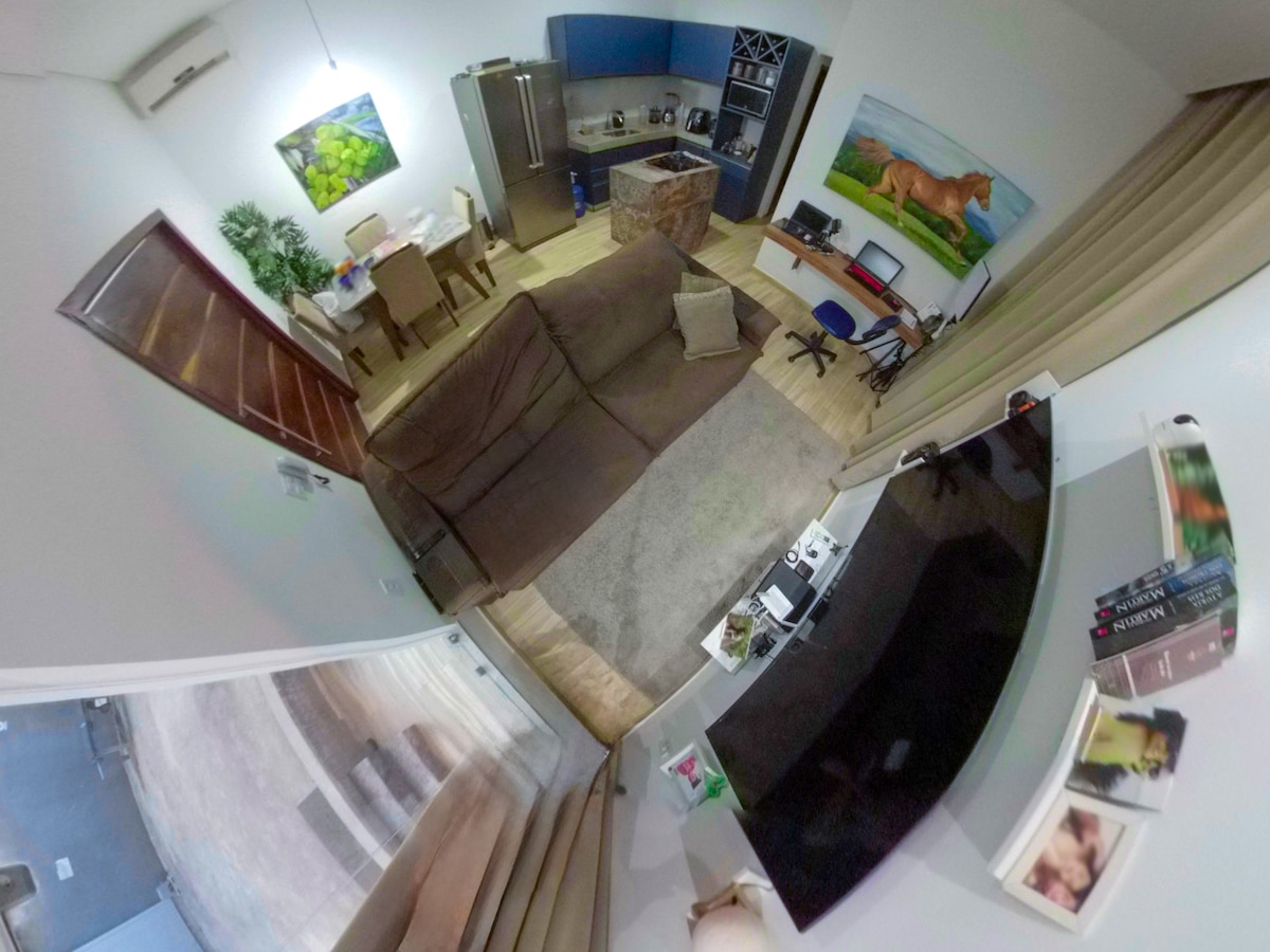 ✨Flat climatizado, bem equipado, de estilo industrial/rústico, situado no bairro KM2, a 5 min. do Centro, Shopping e Orla (de carro). -Garagem (pernoite para carro) ✅ -Wi-Fi rápido ✅ -TV Smart com Netflix, Paramount e YouTube Premium ✅ -Ar condicionado e ventilador de teto ✅ -Cozinha completa ✅ -Toalhas e lençóis ✅ -Rede de descanso ✅ -Espaço de trabalho e muito mais! ✅ 📍Fica no mesmo bairro do Pátio de Eventos Ana das Carrancas, onde ocorre o famoso São João da cidade e outros shows.