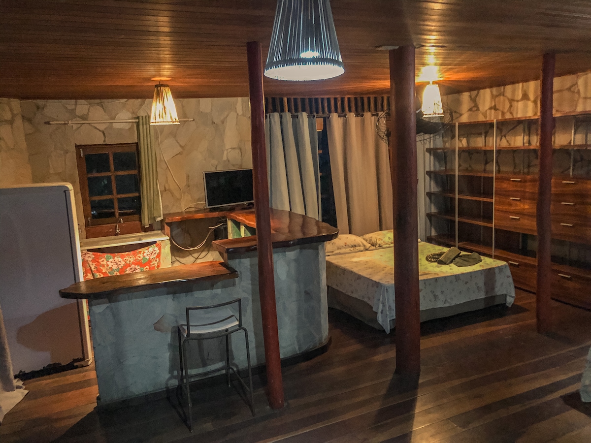 O Javaes é um quarto ideal para quem busca conforto e sossego! Com uma cama de casal e uma de solteiro, banheiro privativo, frigobar e Tv, possui uma linda vista com uma varanda compartilhada.