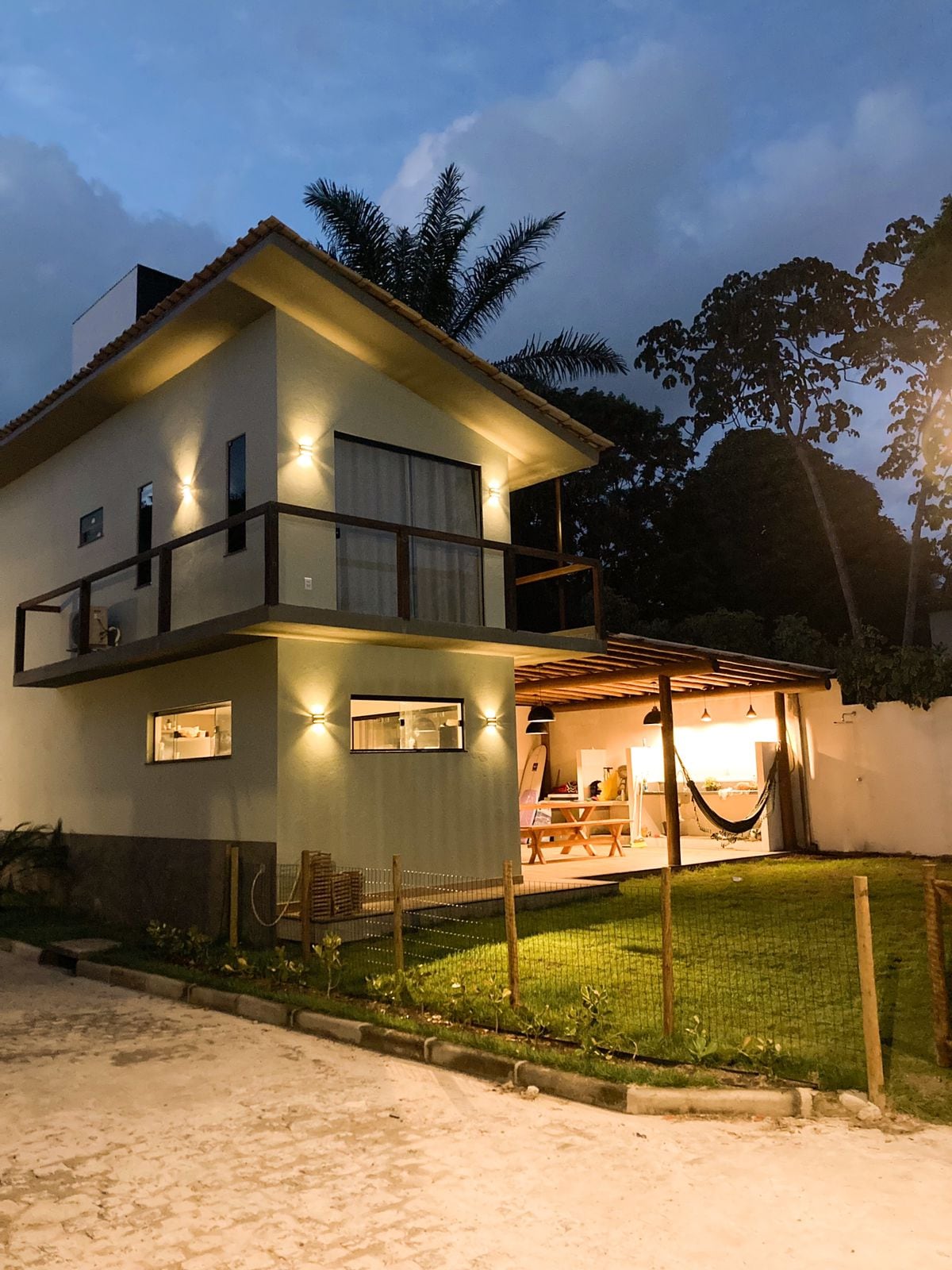 Charmosa casa de 3 quartos, sendo 2 quartos com camas de casal e 1 quarto com 2 camas de solteiro, acomoda confortavelmente 6 pessoas. Em condomínio beira-mar na Praia do Pé de Serra, Serra Grande/BA. A poucos passos da areia, com ar-condicionado, Wi-Fi fibra, cozinha equipada, TV, espaço gourmet com churrasqueira, jardim com espreguiçadeira, chuveirão e redes na varanda. Estilo moderno e acolhedor, ideal para casais ou famílias que buscam conforto, tranquilidade e contato direto com a natureza.