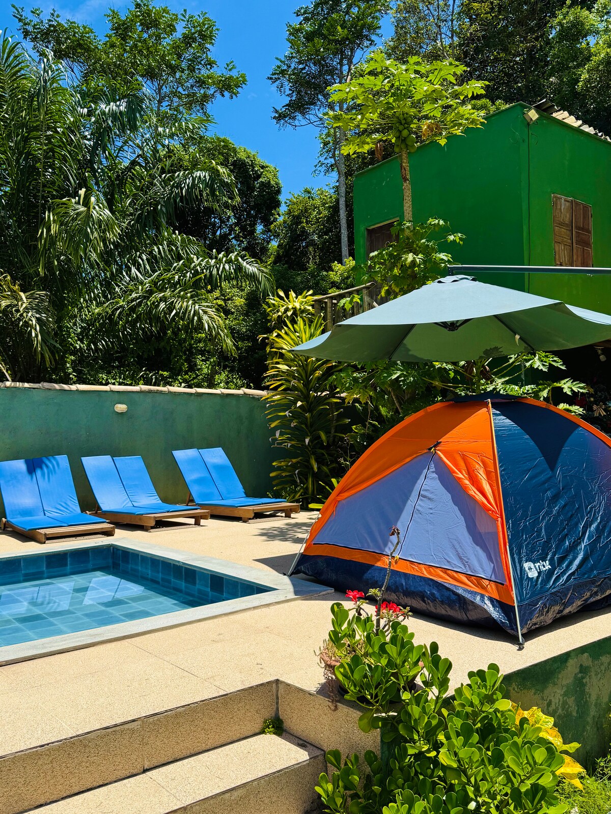 Distante do burburinho e imerso na natureza, tenda glamping espaçosa, com banheiro e cama confortável e todo charme rustico. O sítio é cercado por jardins, tem piscina, perto de trilhas que levam a Praia da Barra do Rio Caraíva. Estamos na região desde os anos 70, conhecendo Caraíva profundamente. Aqui, você estará em boas mãos, com segurança e as melhores dicas e melhores formas de viver uma experiência única em Caraiva. Te convidamos a viver o equilíbrio perfeito entre tranquilidade e conforto