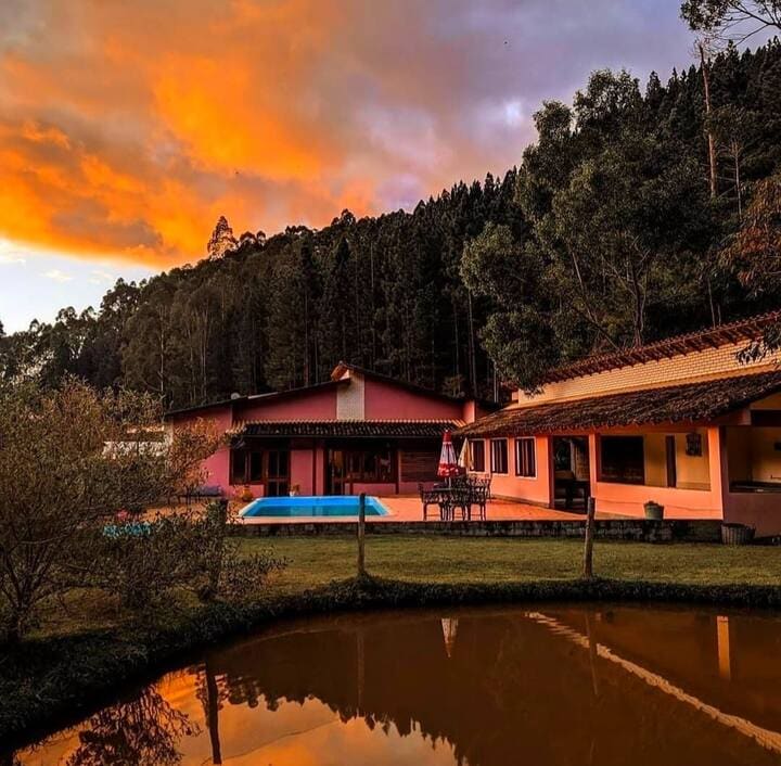Relaxe neste lugar único e tranquilo na terra dos colibris. Nosso chalé é ideal para casais que amam natureza e não abrem mão de conforto e tranquilidade. Completíssimo, o mesmo conta com tudo o que você precisa : sala de estar com TV , Wi-Fi, cozinha completa, quarto com cama casal , varanda com vista panorâmica, lavabo, banheiro, roupa de cama e banho, lareira externa, pergolado, um belo café da manhã e muito mais. Estamos no circuito Caravaggio, ao lado do manacá café e da três santas.
