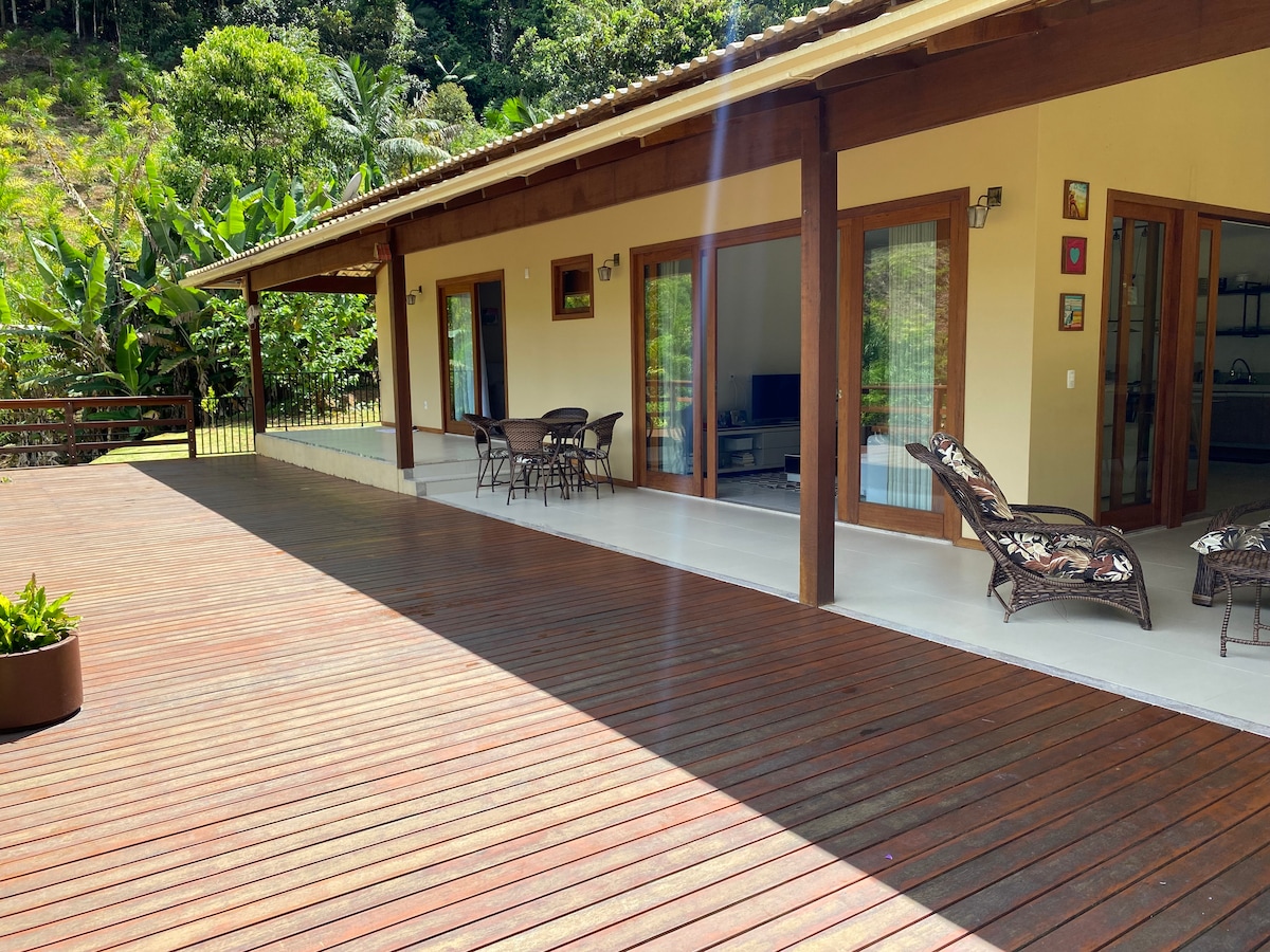 Desfrute de momentos de tranquilidade e interação com a natureza. Casa de campo com deck, varanda enorme, acesso ao rio Jucu por uma belíssima trilha na floresta. Ideal para descansar e relaxar junto à natureza. O condomínio possui uma ótima estrutura com piscina, sala de jogos, trilhas às margens do rio Jucu. Uma verdadeira imersão na natureza com todo conforto e segurança de um condomínio de casas fechado.