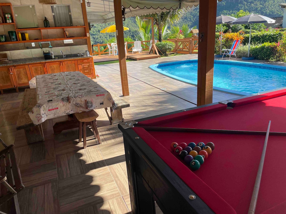 Venha se energizar com a natureza na Chácara Iaras O chalé possui .. * 1 quarto com cama de casal e um sofá cama na sala * Ar condicionado * Ventilador * Piscina com a melhor e mais linda vista para as montanhas * Várias áreas para fazer lindas fotos * Fogão * Air fryer * Sanduicheira * Mixer * Fogão a lenha * Churrasqueira * Mesa de sinuca * Vários jogos * Banheiro interno e externo * Tudo que você precisar.