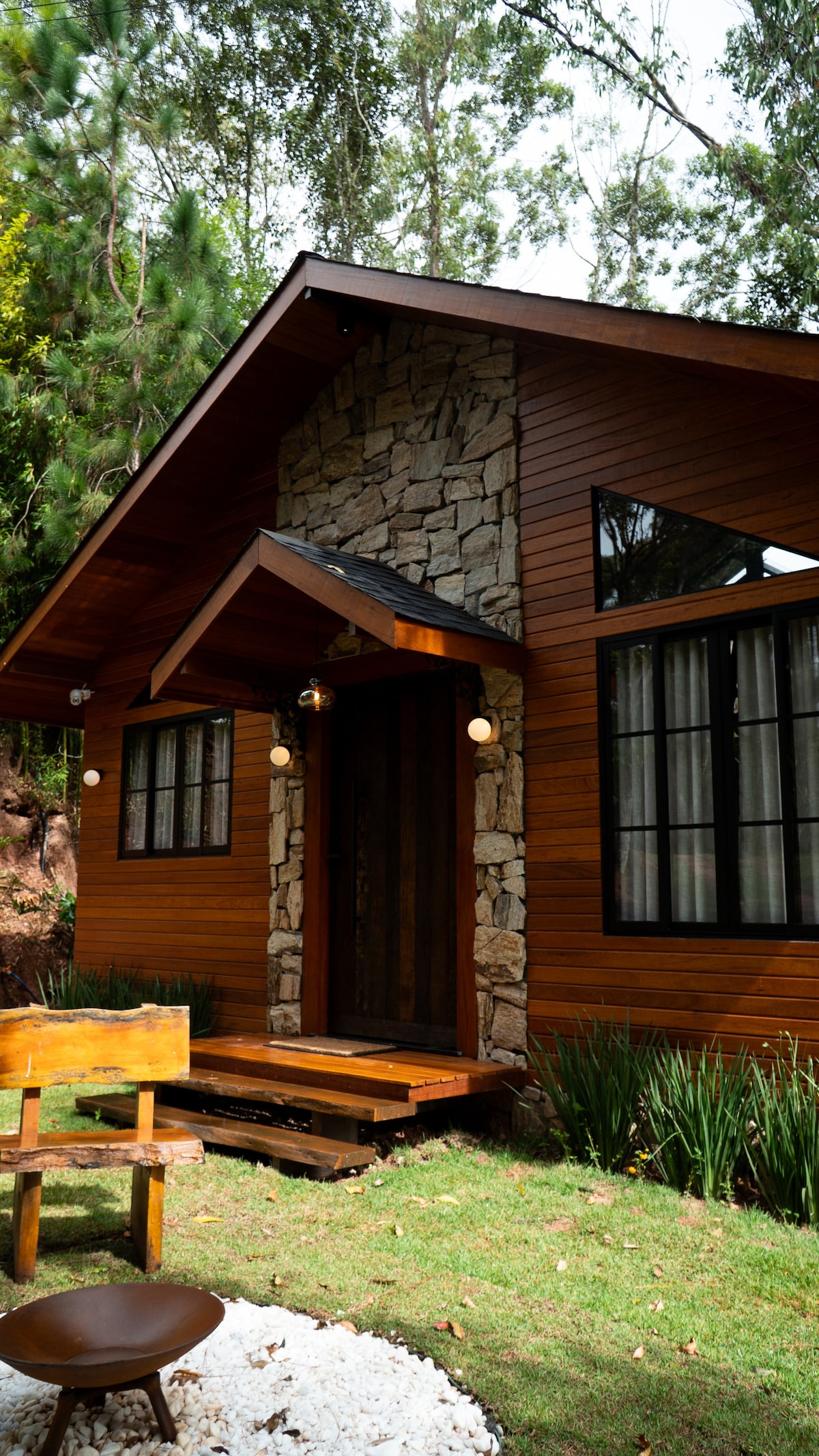 Mátria é um refúgio projetado para casais que buscam uma vivência sensorial e sofisticada em meio à natureza. A cabana combina arquitetura autoral, lareira, cama king com enxoval premium, banheira com vista para a mata e um deck suspenso em meio às árvores. Cada detalhe foi pensado para criar uma experiência única, íntima e memorável. Localizada em Pedra Azul, a poucos minutos do parque estadual. @matriapedraazul