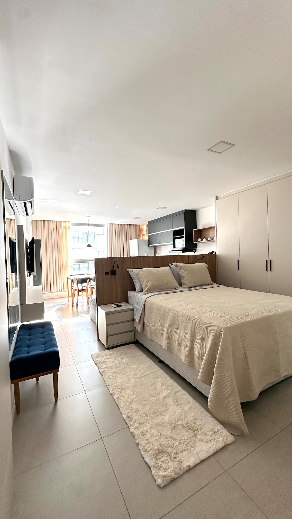 公寓设施齐全,有空调,位于海滨,带床上用品