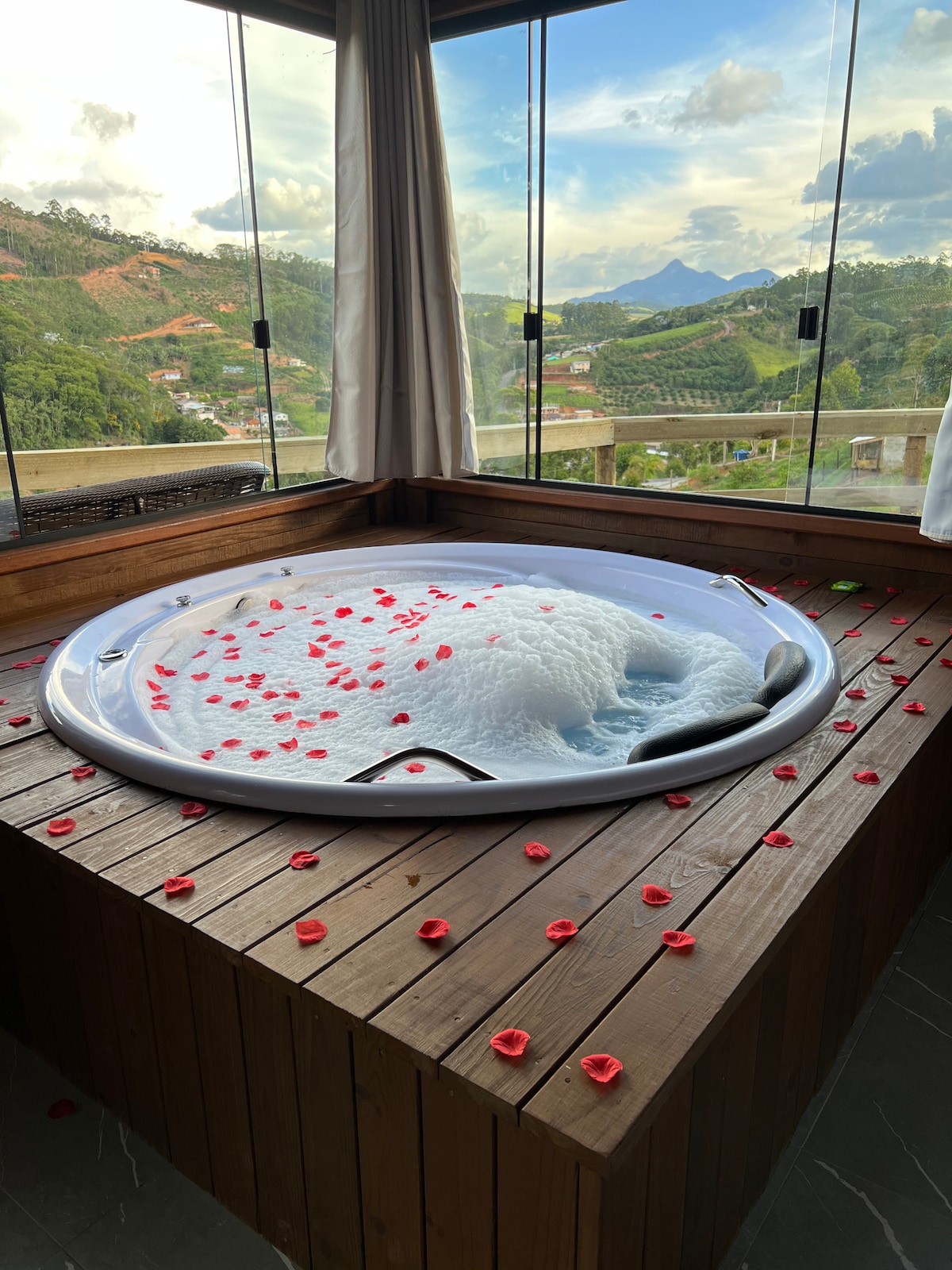 Relaxe neste lugar único, privado e tranquilo espaço com vista para lago e floresta, em propriedade rural. O espaço tem cama queen com sala de estar, varanda com vista pro lago e mata atlântica, agua aquecida no chuveiro e na banheira, closet, banheiro com pia dupla e box luxo, e espaço com banheira de imersão com vista panorâmica. @casadescansodapreguica (insta)