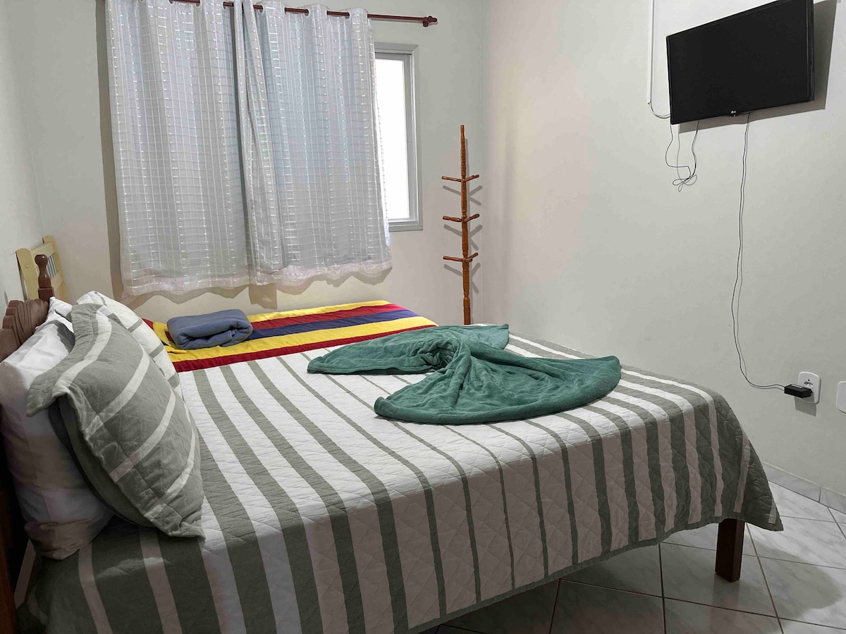 Casa bem ampla iluminada, ventilada e bem dividida, com sala ampla, cozinha, quarto principal e hospede, banheiro. Ambiente simples e disponível a qualquer pessoa, independente de religião, orientação sexual sem maiores luxos e muito familiar. As cores do arco iris são muito bem vindas neste ambiente.