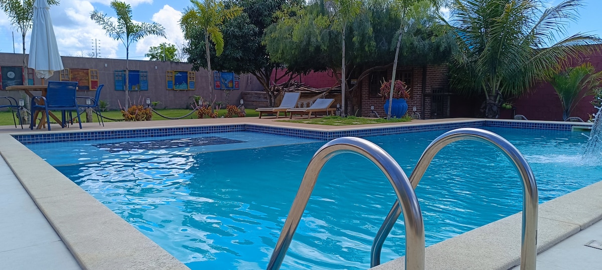 Casa térrea, tipo apartamento, com decoração rústica e praiana, para se sentir verdadeiramente em casa. Montada para seu conforto, possui ar condicionado, ventilador e SmarTV 55' Qled. Disponibilizo roupa de cama, cobertor e travesseiros. Solicito que traga toalha de banho, pois esse item não tem no imóvel.