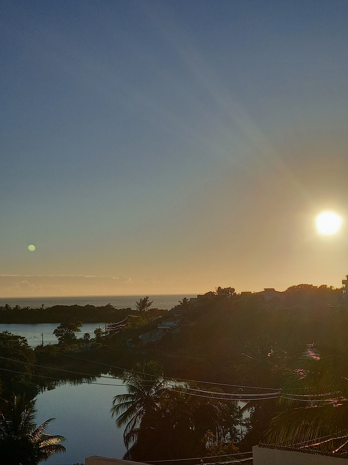 Linda casa, vista para nascer do sol,lagoa e mar.