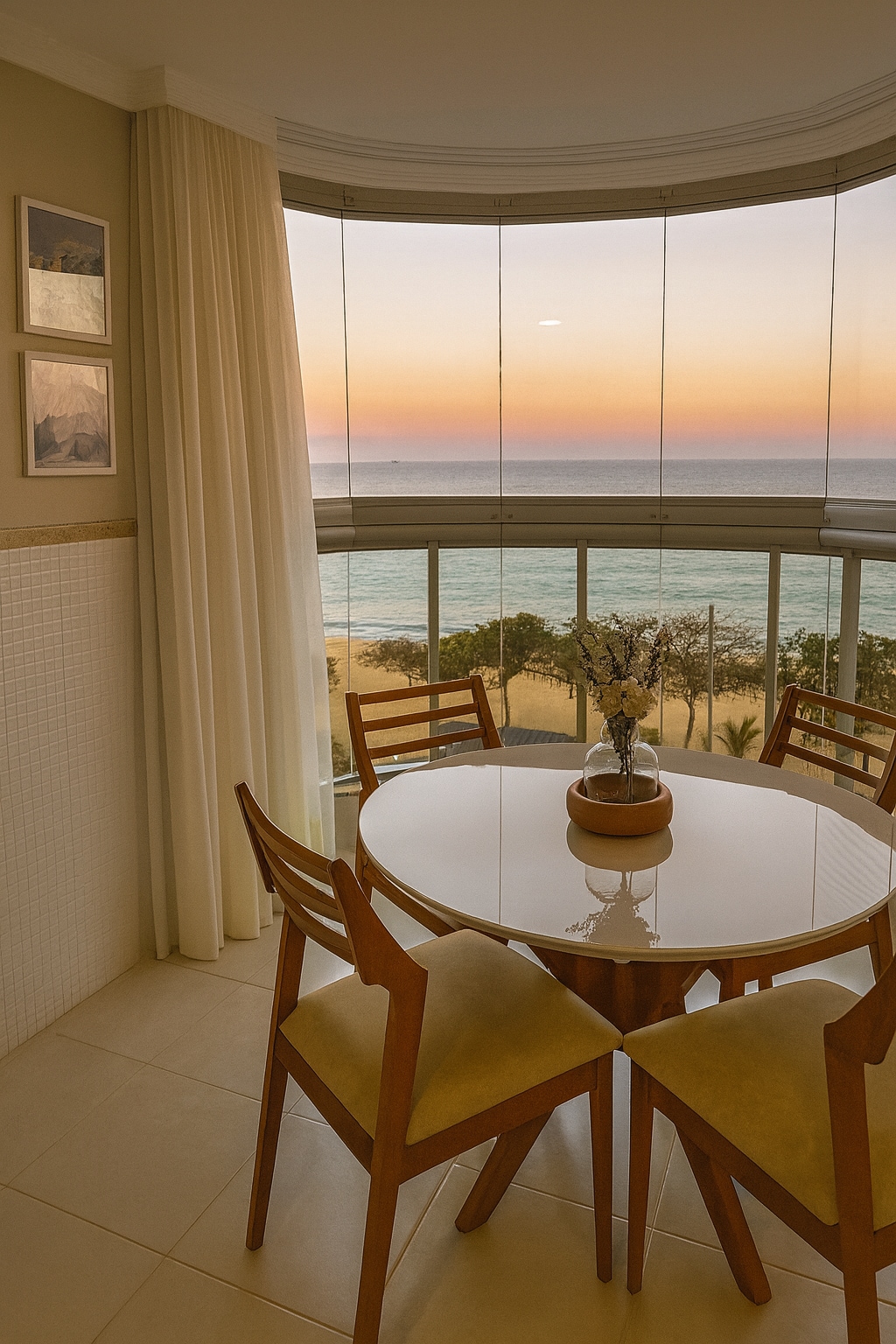Conforto, luxo e tranquilidade. Isso você encontra em nosso apartamento que foi cuidadosamente projetado para lhe proporcionar uma experiência inesquecível com o MAR. Nesse ambiente arquitetônico clean, moderno, tecnológico e sofisticado você poderá usufruir da sensação de estar em um navio em alto mar. Você merece ter essa experiência! Sinta o cheirinho do churrasco com essa bela vista enquanto relaxa em nosso balanço panorâmico. Você não vai se arrepender!