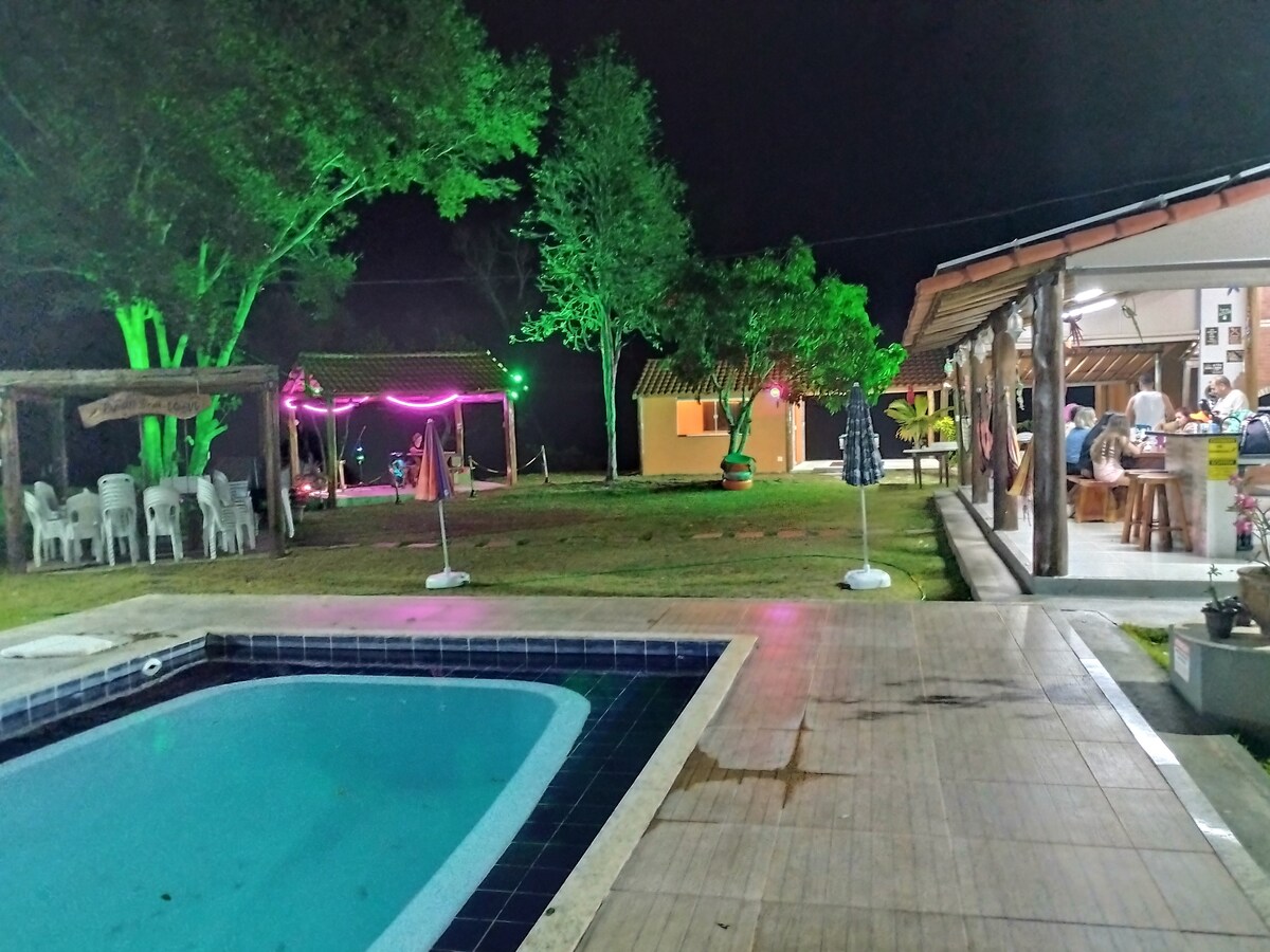 Viva momentos inesquecíveis neste lugar único e ideal para famílias. Fotos recentes, tiradas em Janeiro/2024 - Casa com todos os quartos Climatizados. - Alarme de segurança disponível no celular do hóspede - Piscina com hidromassagem e cascata - 1 Suite, 1 banheiro comum e 1 banheiro na área externa/piscina - Todos utensilios de cozinha. A Mais nova da cidade com acabamento de primeira! Garagem coberta pra 3 carros, portão eletrônico, poço artesiano pra não faltar agua no verão.