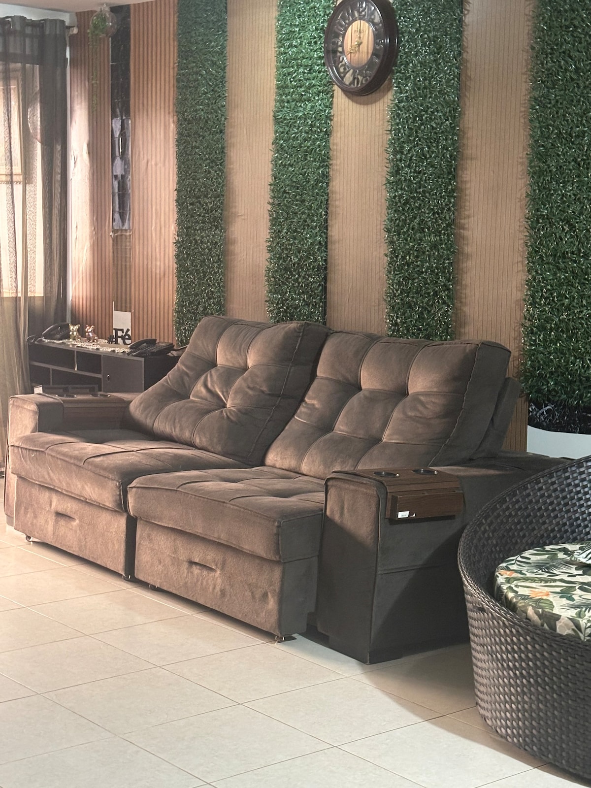 Na cozinha temos um micro-ondas, sanduicheira, jarra elétrica, garrafa de café, geladeira, 4 pratos e garfos, 4 facas, 4 copos para preparo de uma refeição básica ou café da manhã, cozinhar não é permitido. Na sala temos televisão de 50", tecnologia 4k, um ventilador, TV a cabo e 1 sofá-cama que acomoda duas pessoas. No quarto tem 1 televisão de 32", 1 cama queen, 1 ar-condicionado. No banheiro temos secador de cabelo e varal retrátil. Wi-fi gratuito. A garagem é rotativa, sem vaga fixa.