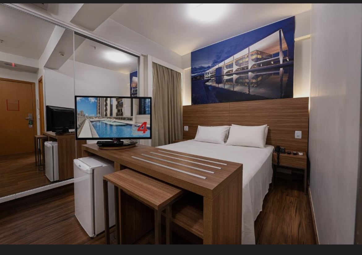 Kit Studio: sala, cozinha, suite, garagem interna e elevador! Ideal para sua acomodação em Brasília! Cama de casal confortável colchão novo. Roupas de cama, banho, utensílios de cozinha, ar-condicionado,frigobar, Smart TV, Wi-Fi, bancada de refeições, garagem interna, elevador, portaria 24hs. fechadura eletrônica. Condomínio seguro e silencioso. Localização espetacular. Bairro Nobre em Brasília. Região Central.