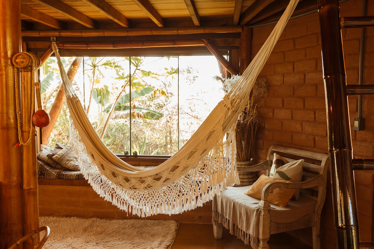 Welcome to your nature escape in the heart of Cerrado, a cozy solar-powered adobe lodge with access to exclusive hiking trails and waterfalls. If you love quiet mornings, endless skies, star-filled nights, and the presence of real nature, this is your place. You’ll enjoy: - a peaceful retreat away from city noise - trails, stunning views, and nature all around - comfortable spaces designed for slow mornings and deep rest - a calm environment perfect for couples, small groups, or solo travelers