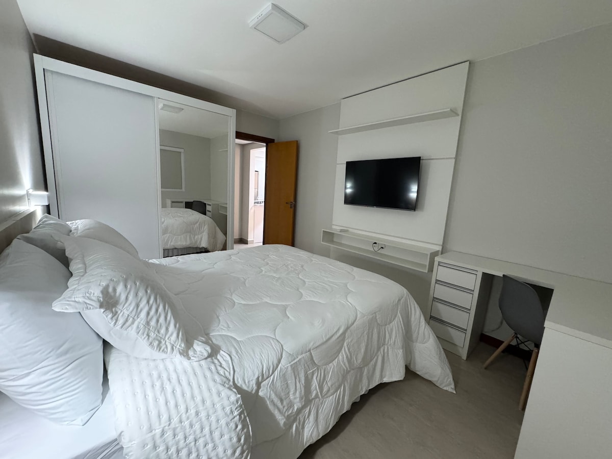 Apto 45 m2. Quarto:Cama Queen,armários,bancada escritório,TV 4K 50”,ar-cond.,roupa de cama/banho. Sala: sofá cama,TV 4K 50”,ar-cond.,mesa e 4 cadeiras design italiano. Cozinha:armários,bancada,cooktop 4 bocas,geladeira,forno elétrico,forno microonda,cafeteira elétrica,filtro água,sanduicheira, panelas,utensílios. Piscina borda infinita, hidro,sauna,academia,brinquedoteca,salão festa,espaços gourmet. 1 vaga garagem. Portaria 24 horas porteiro e segurança. Temos outro apto