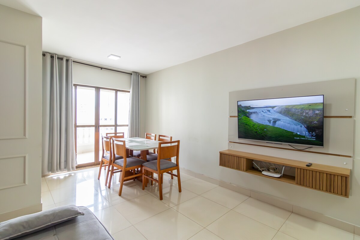 Apartamento no Life Resort, em frente ao Lago Paranoá, jardim e piscinas, decorado para o bem-estar dos hóspedes, com mobiliário novo, cama-box queen, frigobar, tv de 50", cafeteira Nespresso, filtro com água gelada, armários e suporte para mala, ferro de passar, secador de cabelo, berço desmontável (sob solicitação), coktop, microondas, pratos, copos, talheres, panelas e utensílios. Como cortesia: mini sabonete, shampoo e condicionador, roupa de cama e banho, produtos de limpeza e WiFi.